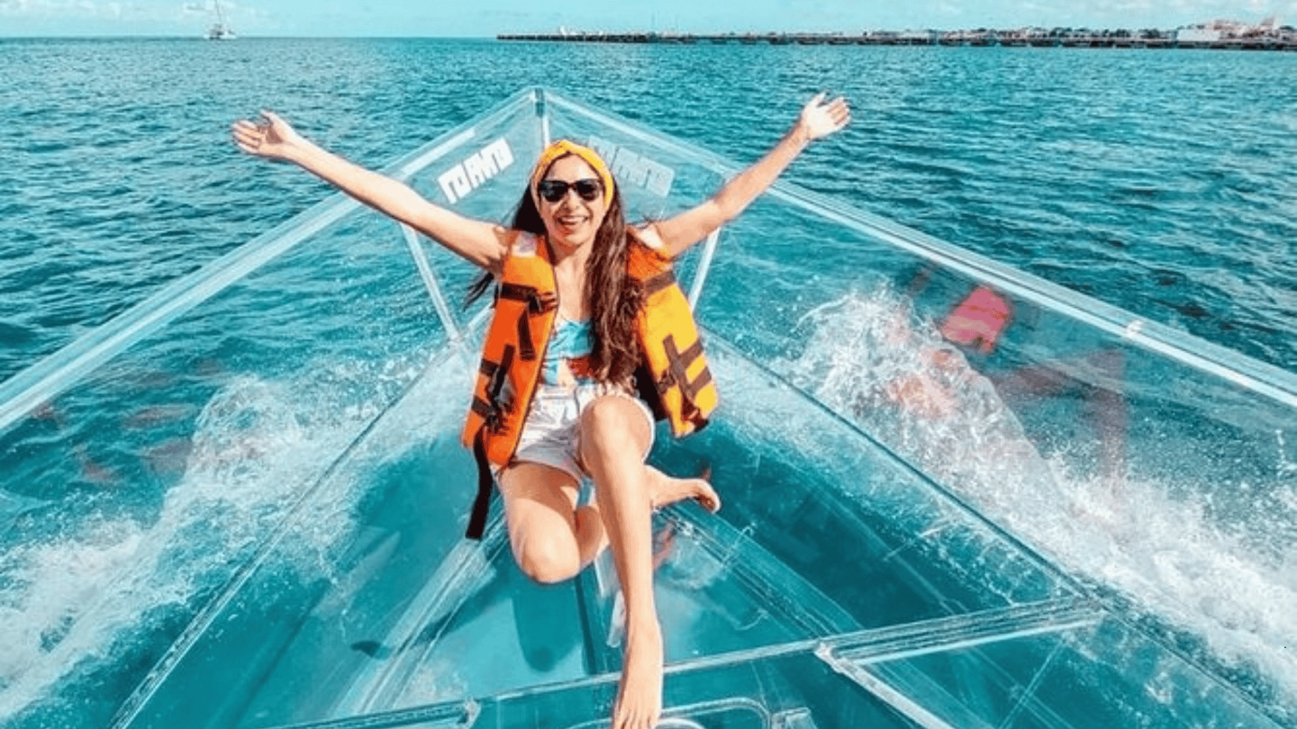 Glass boat tour on Laguna Nichupté in Cancún to see the Caribbean from a unique perspective. Sail with a transparent bottom and appreciate marine life and the color of the water. Explore a natural reserve and enjoy a relaxed ride. Includes two drinks per person.
