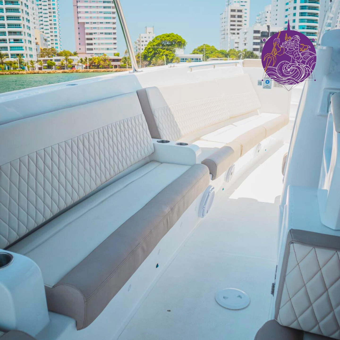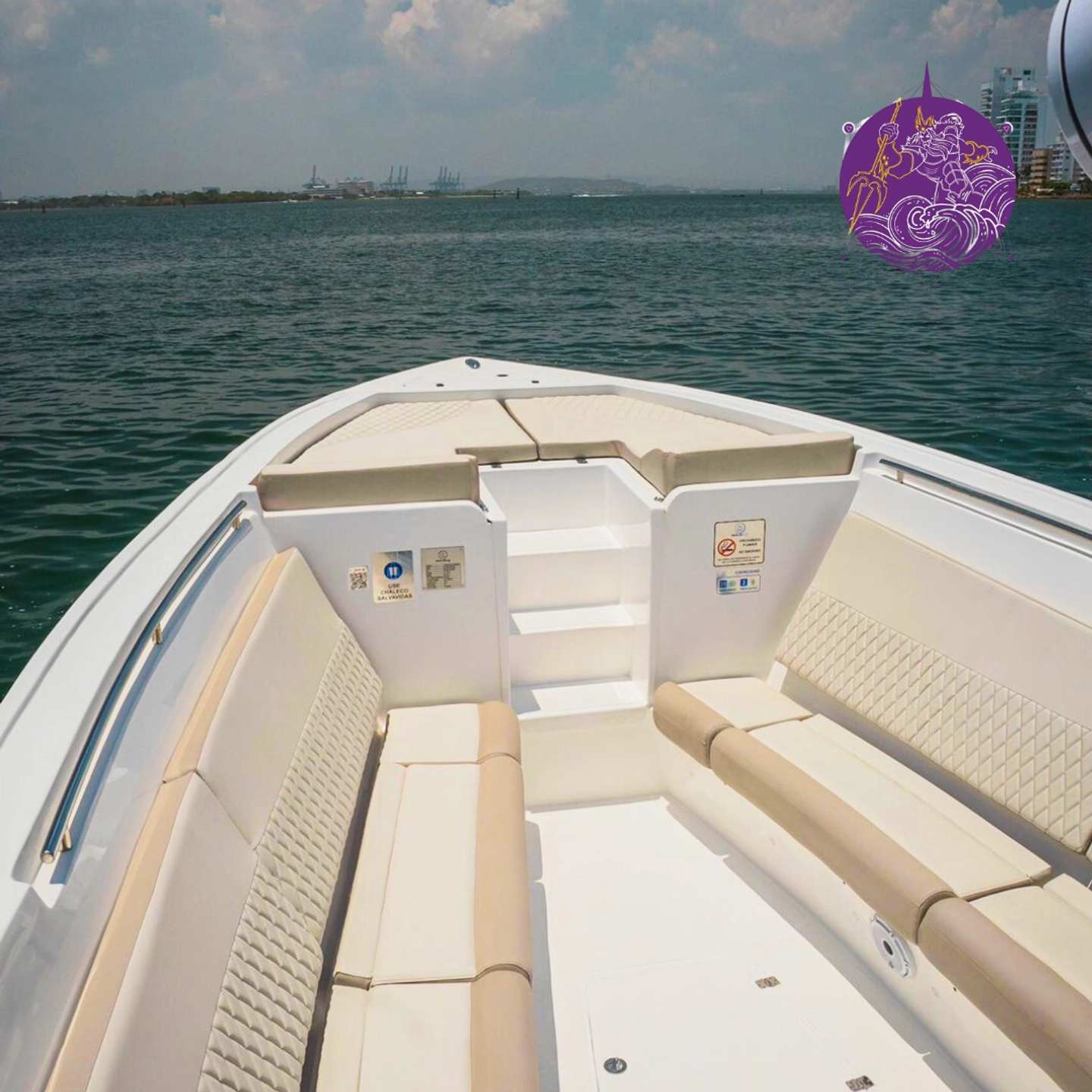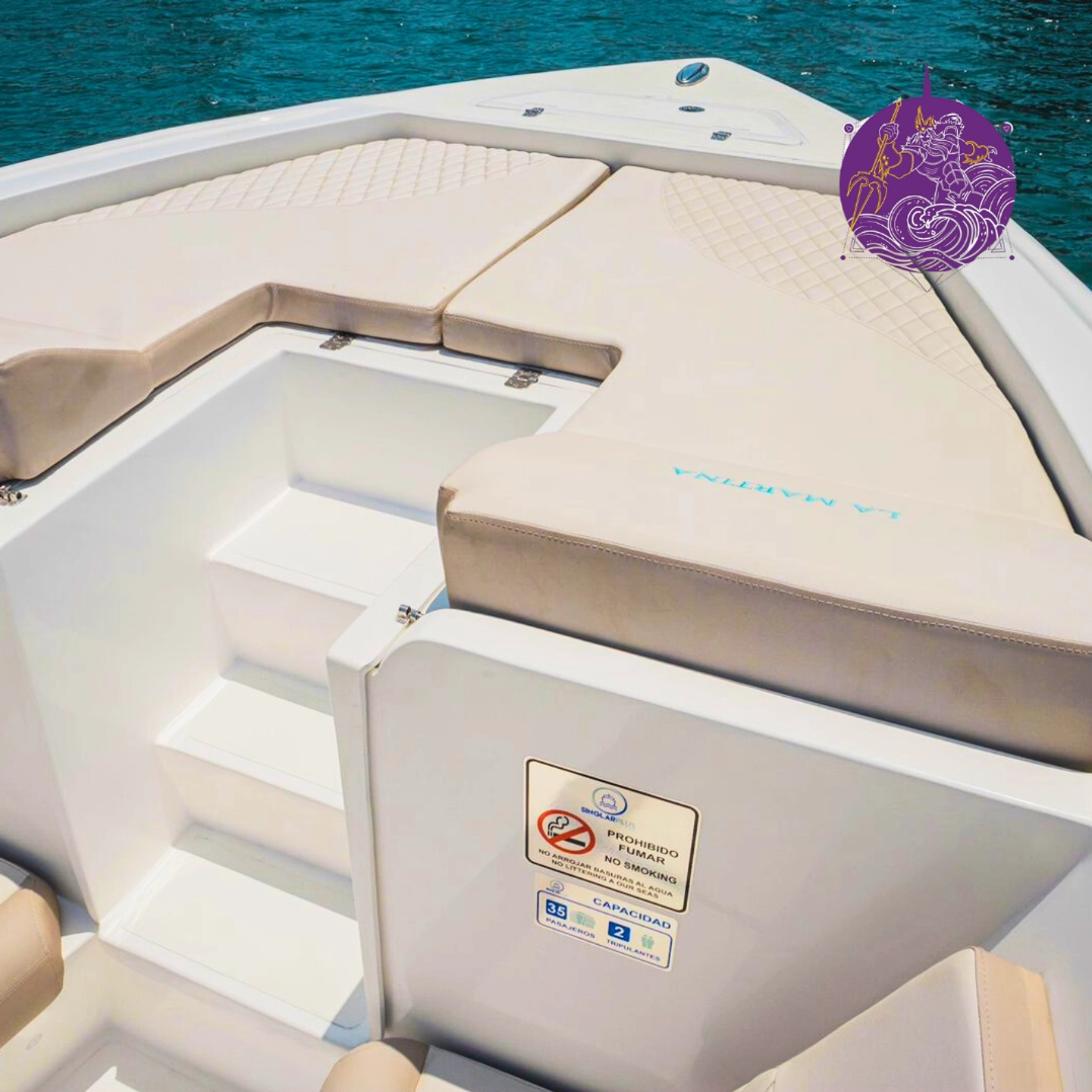 Experience an unforgettable sunset sailing to the Rosario Islands on a luxury sports boat. Enjoy the comfort and exclusive design of the La Martina boat, with premium music, an onboard bar, and a vibrant atmosphere. An ideal tour to relax, socialize, and capture spectacular views of the Colombian Caribbean as the sun sets.