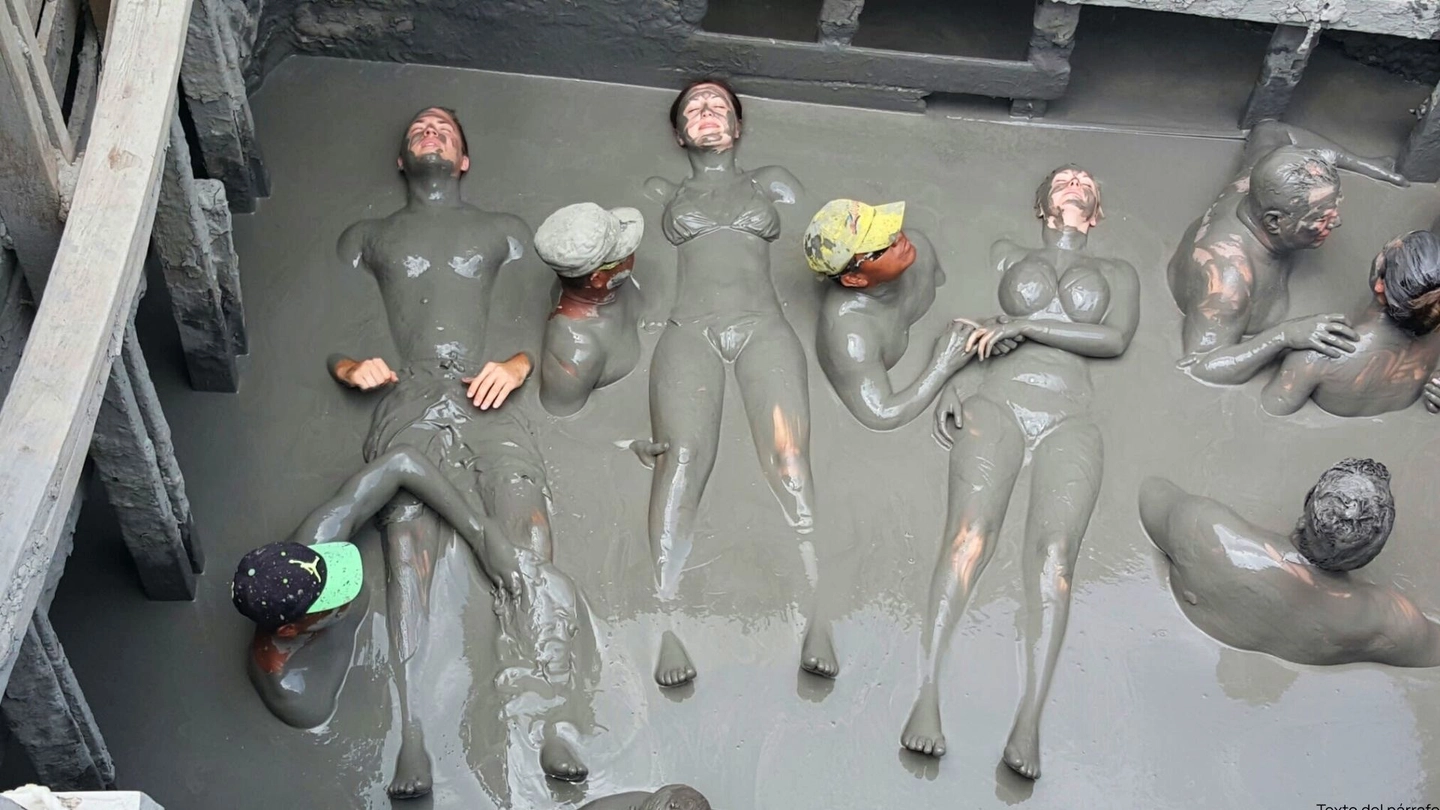 1 MinuteLlegada al volcán para descender al cráter y disfrutar de un baño de lodo con propiedades terapéuticas, seguido del lavado en un lago cercano con apoyo de la comunidad local.