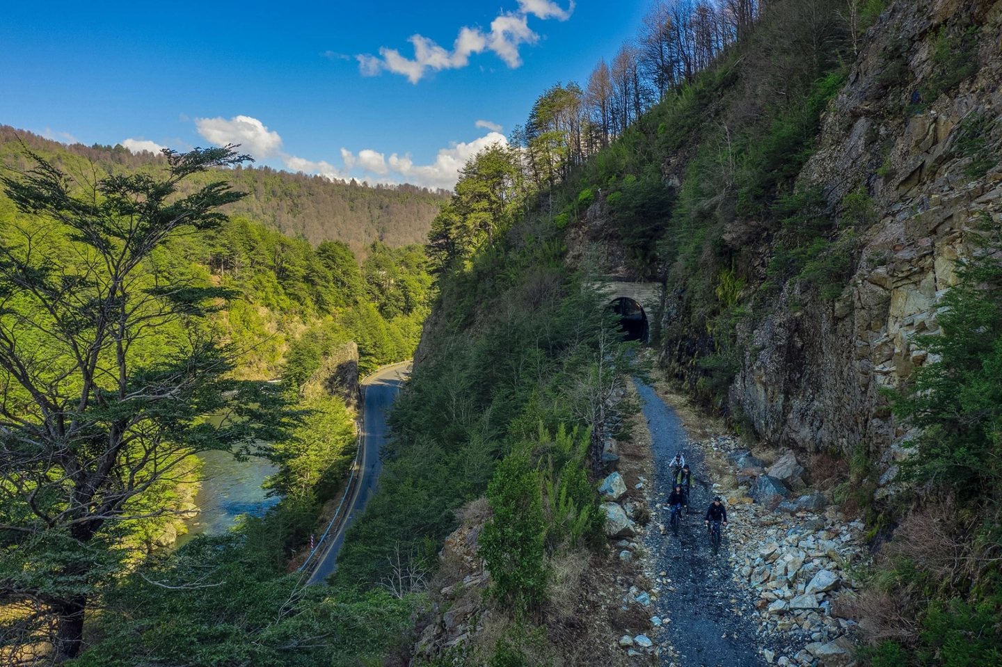 Explore the Andean Cycle Path on a self-guided mountain bike tour. Connect Manzanar and Malalcahuello along a historic 13-kilometer railway line, passing through tunnels and old stations, with assistance and transfers included.