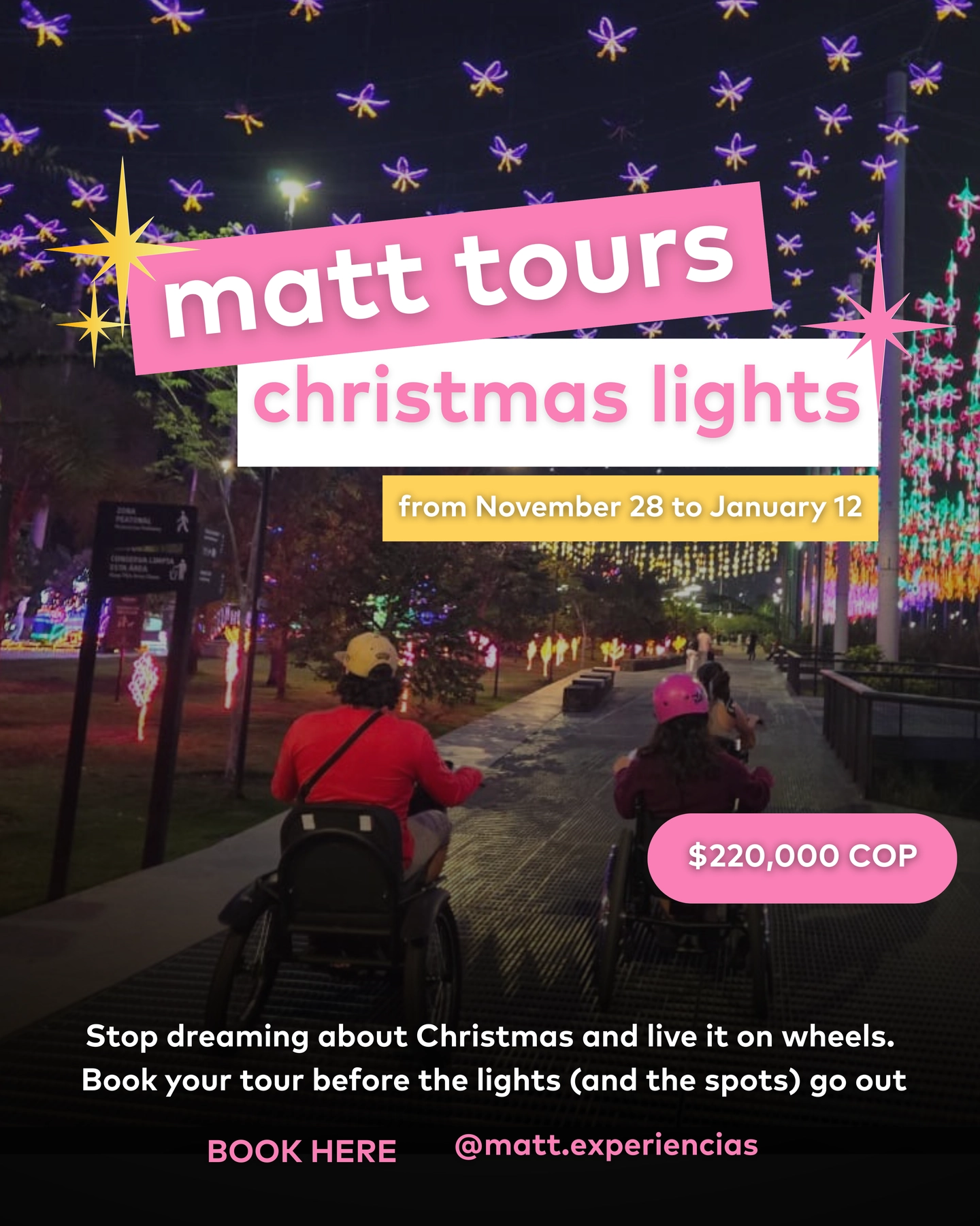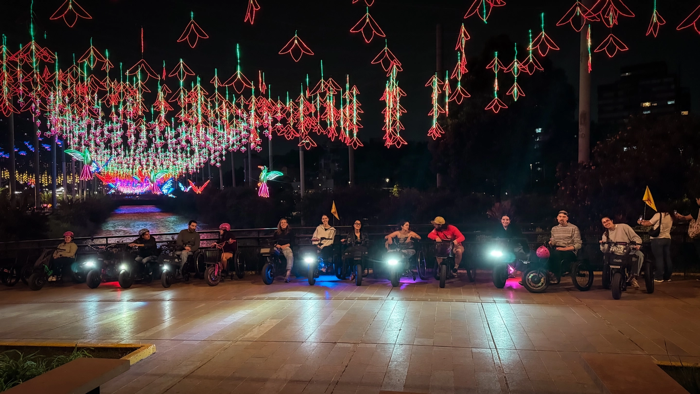 Vive una Navidad sobre ruedas recorriendo las luces más espectaculares de Medellín en un triciclo eléctrico inclusivo. Disfruta un paseo cómodo, seguro y lleno de magia mientras conoces los rincones más iluminados de la ciudad.