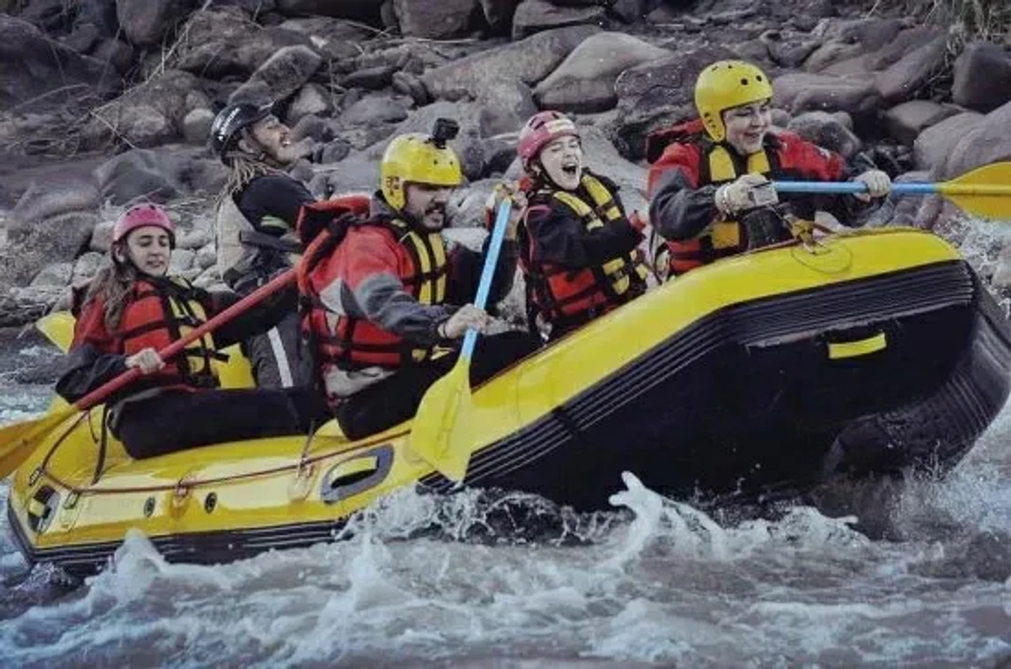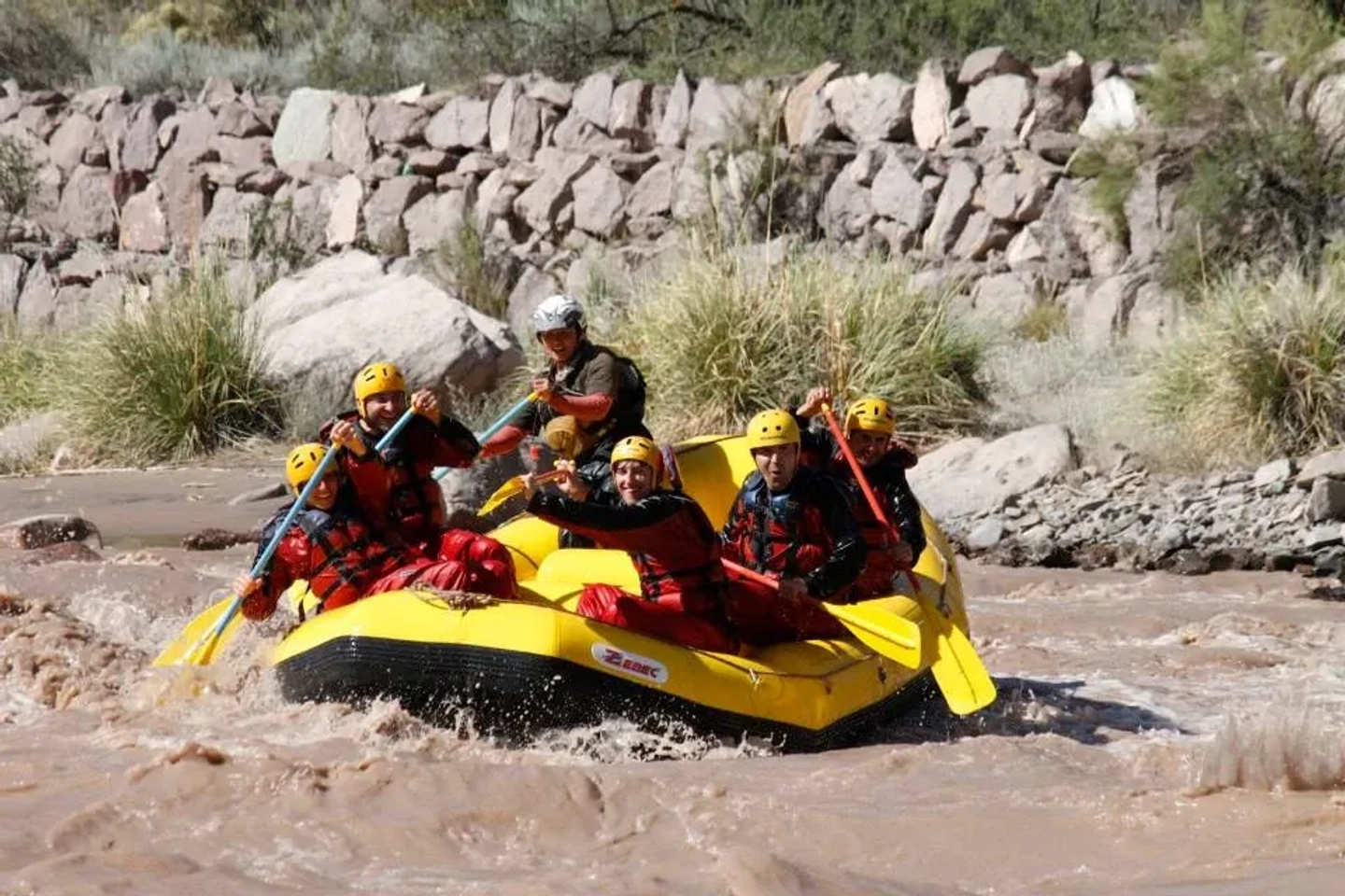 The day begins with a welcome from our renowned expert guides. After a comprehensive safety briefing and the distribution of necessary equipment (helmet, life jacket, and paddle), we will embark to start the descent. The first kilometers of the route will allow you to acclimate to the waters of the Mendoza River, practice team paddling techniques, and feel the initial excitement as you navigate the first rapids, all while surrounded by the impressive natural beauty of the region.