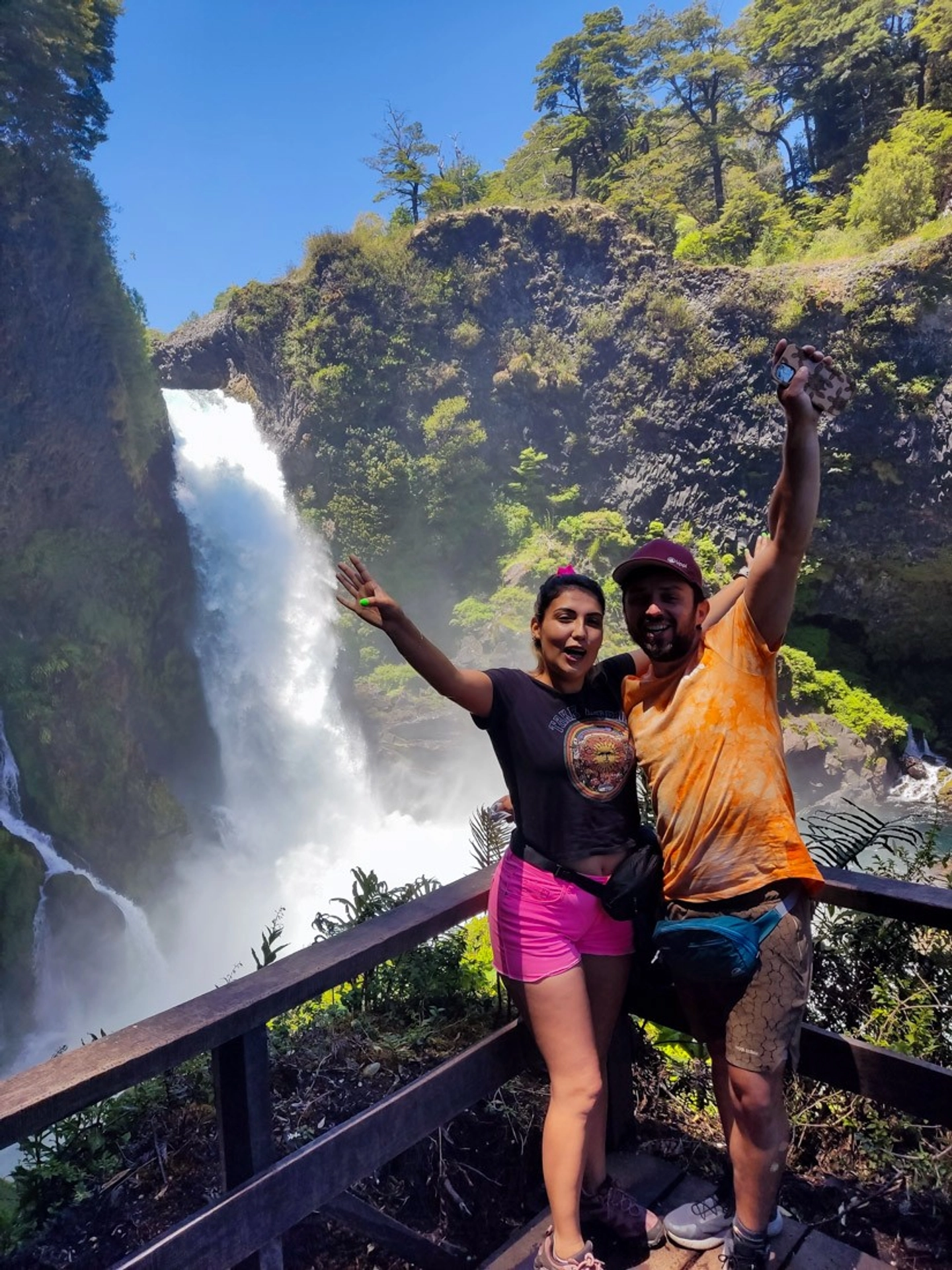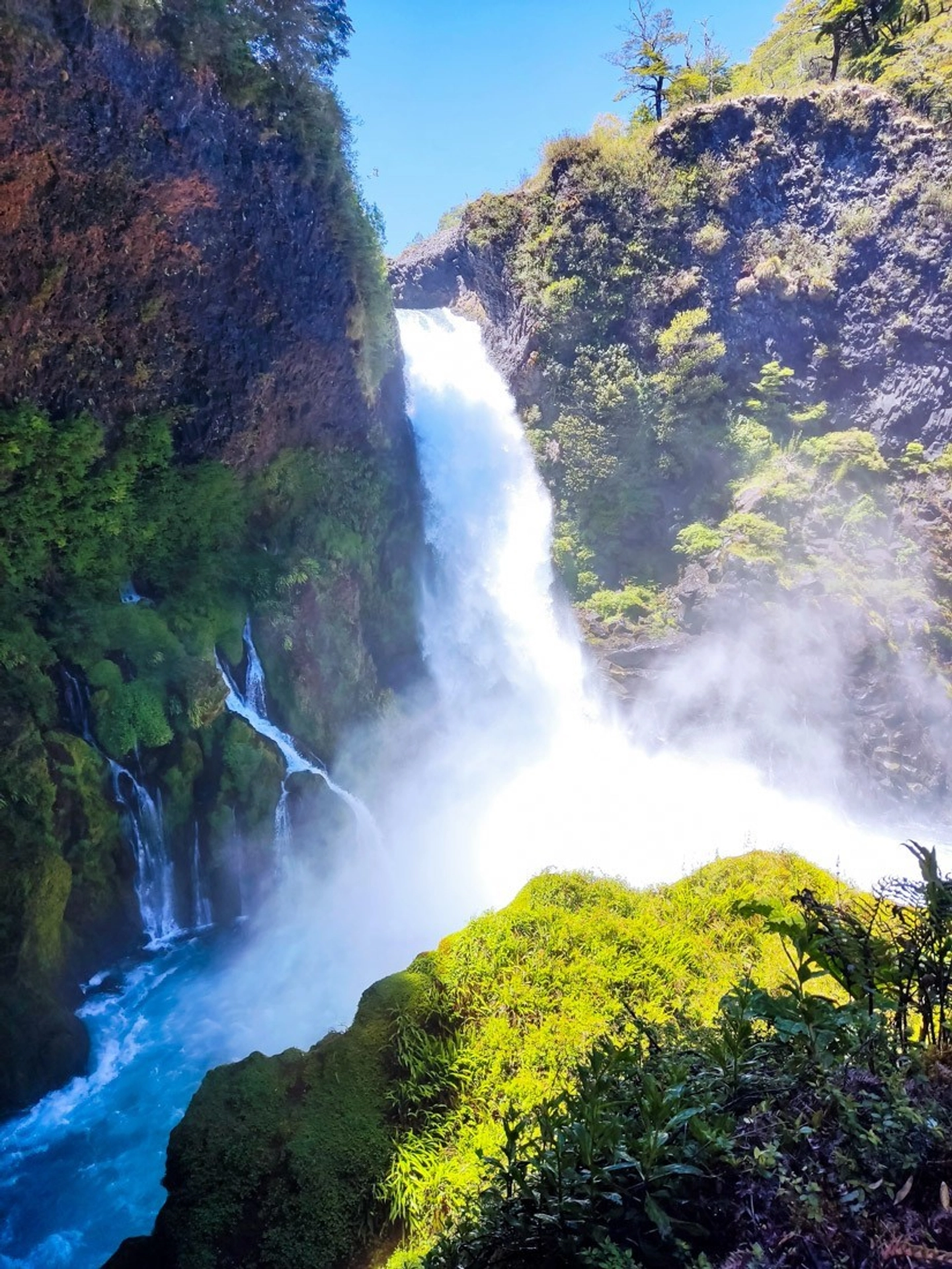 Walk through native forests to reach powerful waterfalls.