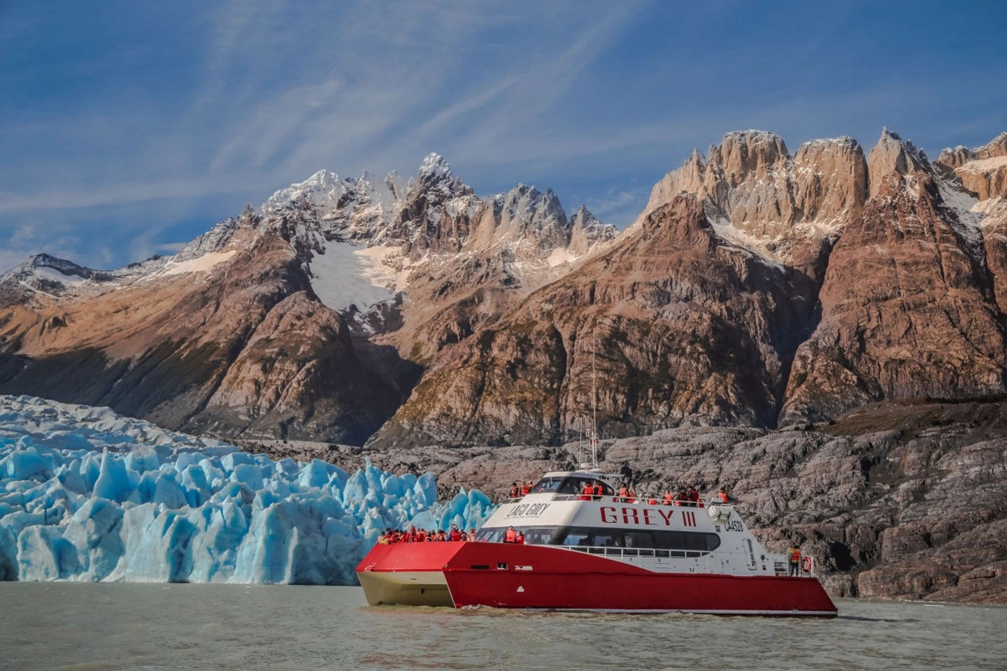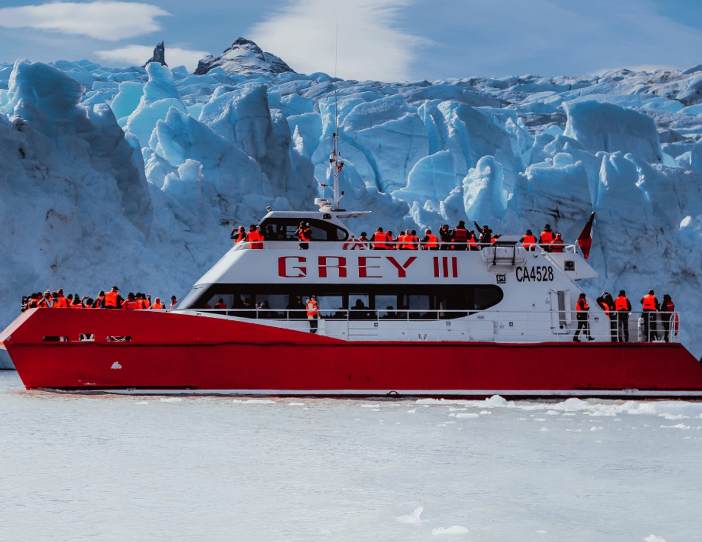 Embark on an unforgettable journey in Torres del Paine National Park with the Grey Glacier navigation. For 2 hours and 45 minutes, you will enjoy unique landscapes of floating icebergs, towering mountains, and lush vegetation aboard the "Grey III" vessel, with an aperitif made from millenary ice included.