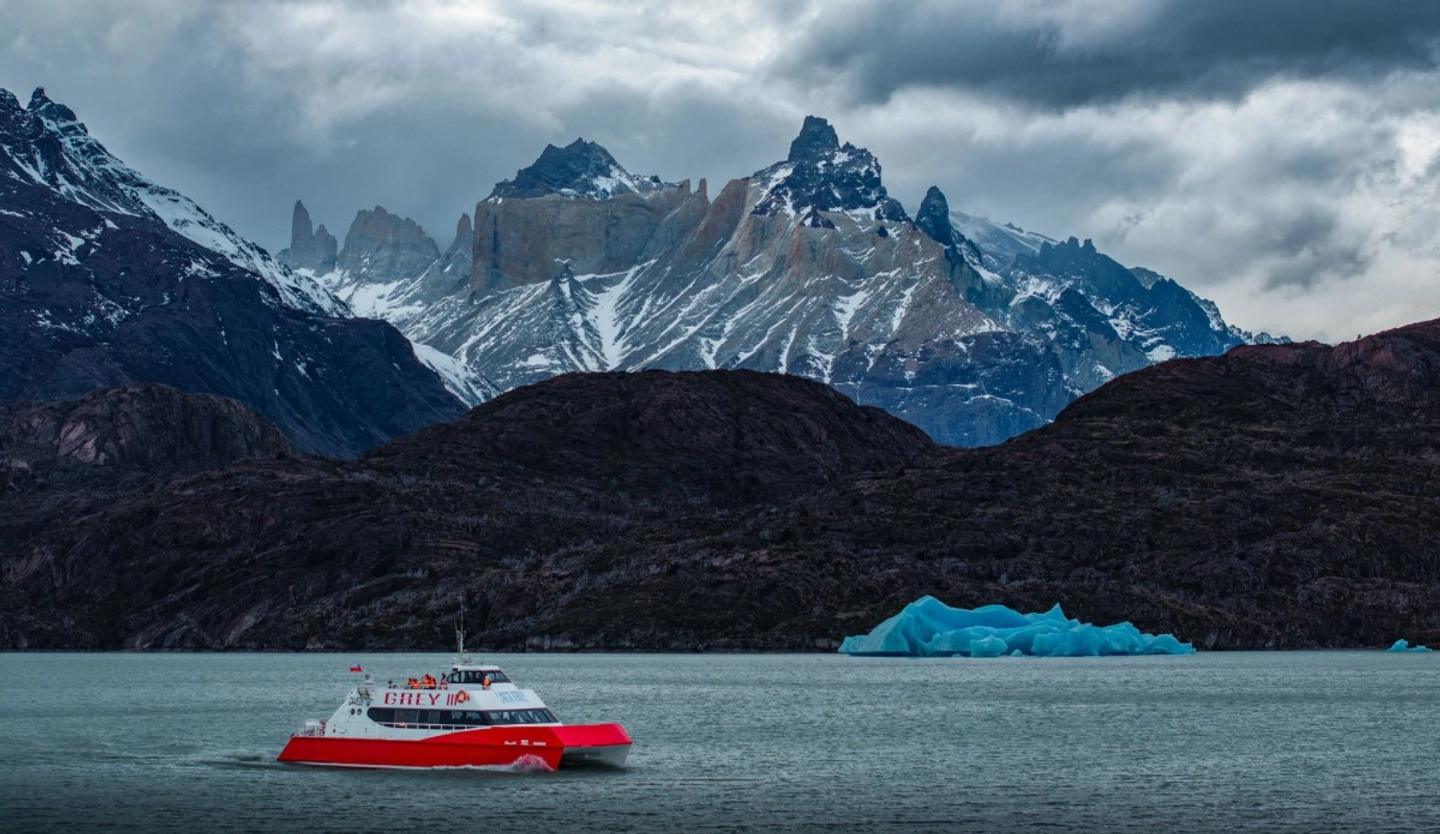 Arrive at the dock and board the "Grey III" catamaran. Onboard, you will enjoy a 2 hour and 45-minute navigation across the waters of Grey Lake, visiting the majestic Grey Glacier and admiring the floating icebergs and the surrounding mountains.