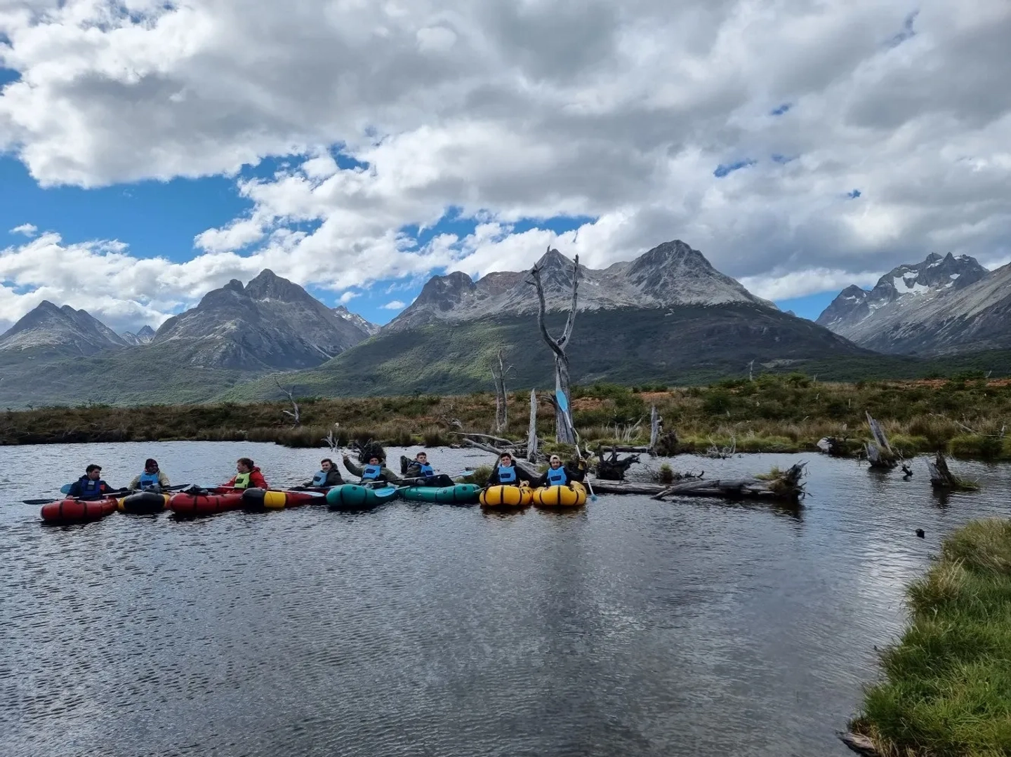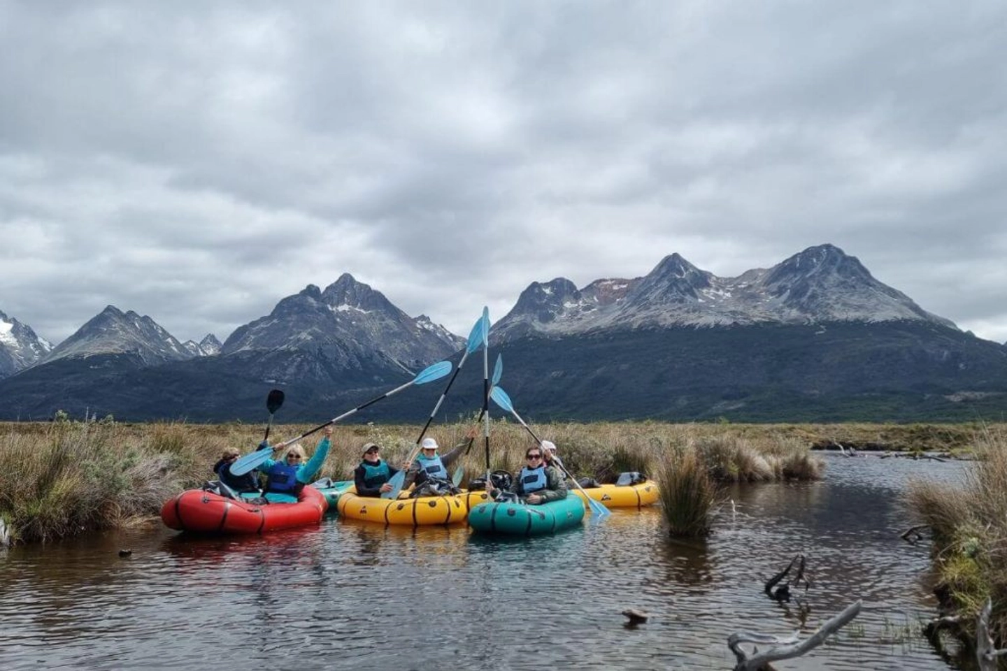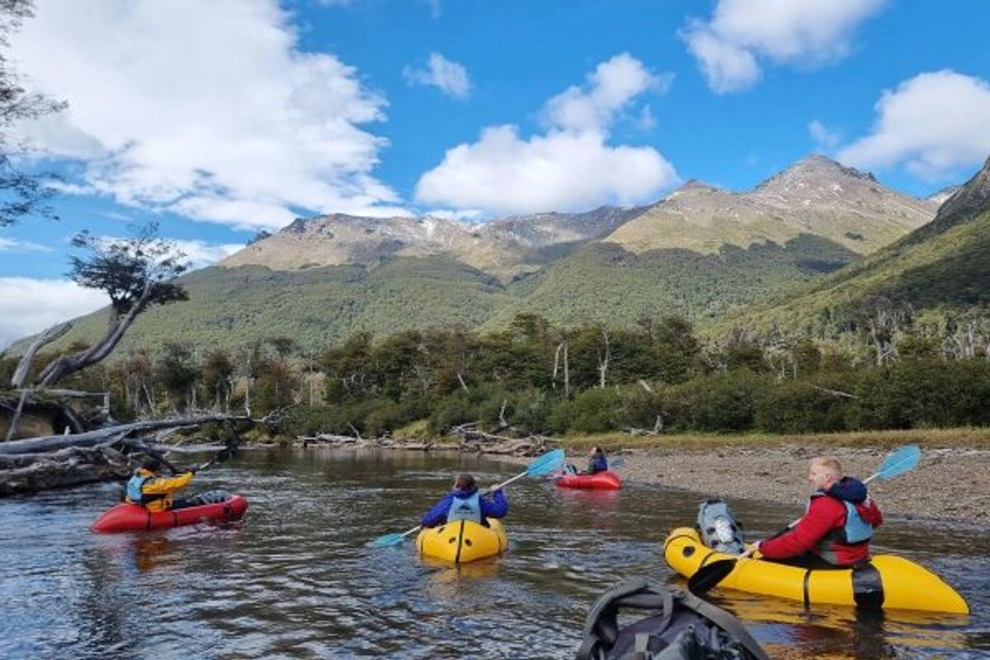 - Equipamiento completo de packrafting: bote, remo, chaleco salvavidas, mochila estanca, pantalón impermeable.
