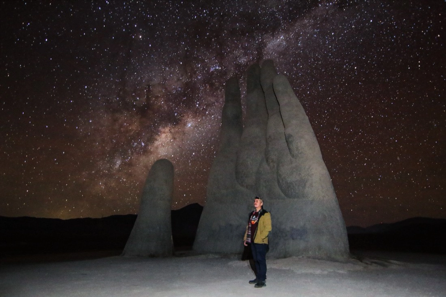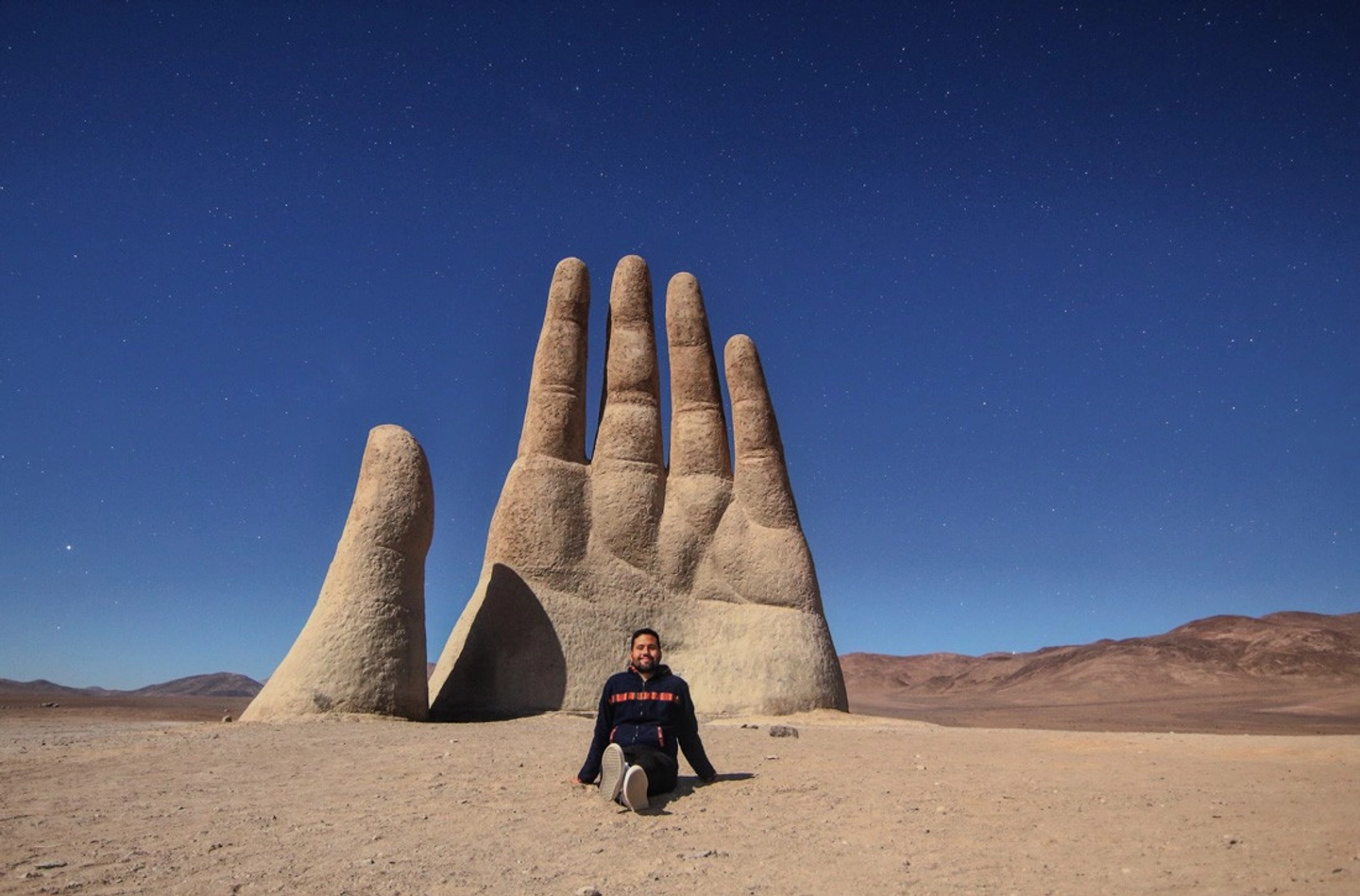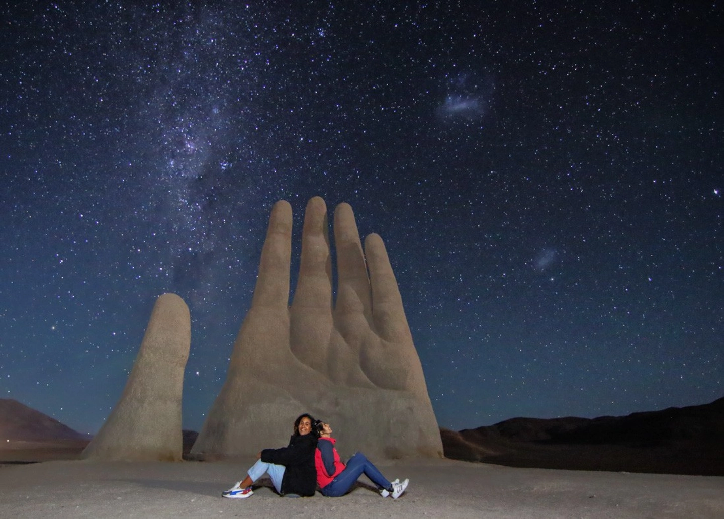 30 MinutosIniciaremos el trayecto desde la ciudad de Antofagasta hacia la icónica escultura de la Mano del Desierto, ubicada a 75 kilómetros de distancia. A lo largo del camino, podrás disfrutar de la inmensidad del desierto iluminado por el crepúsculo.