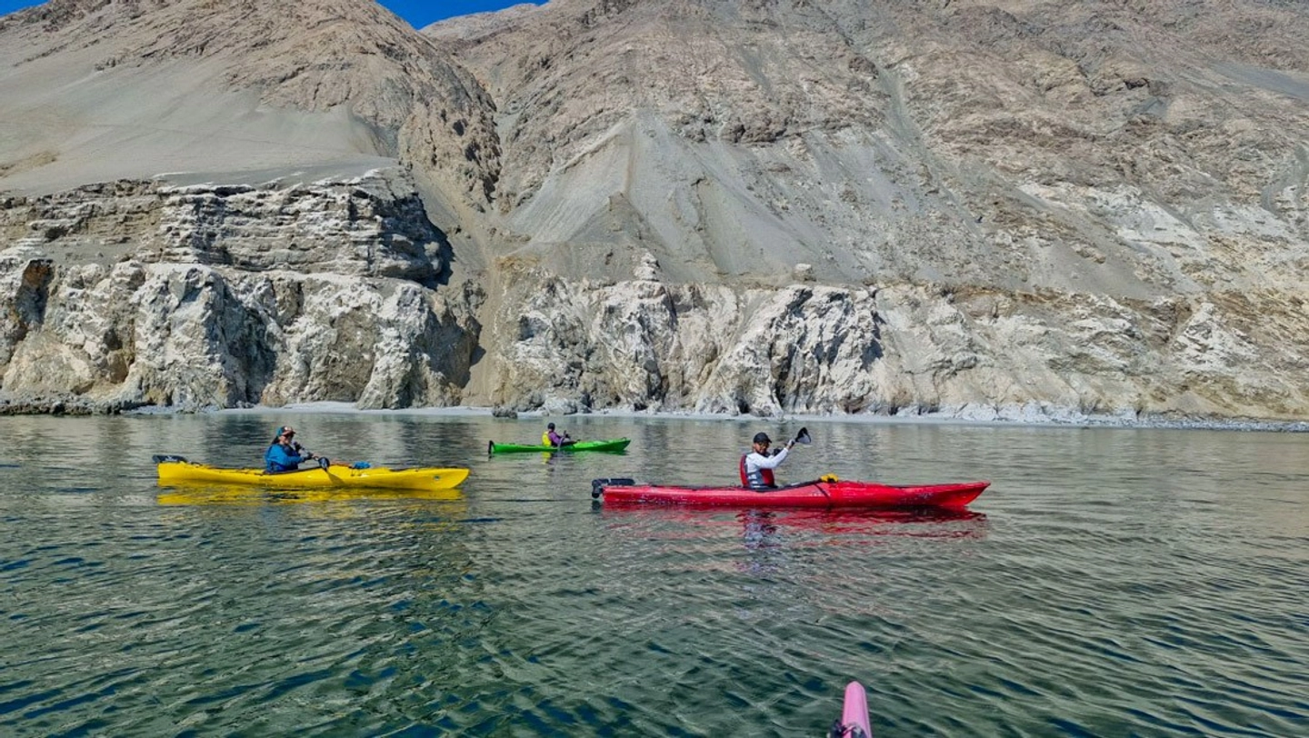 Breve instrucción de seguridad y técnica de remado antes de iniciar la travesía en kayak.
