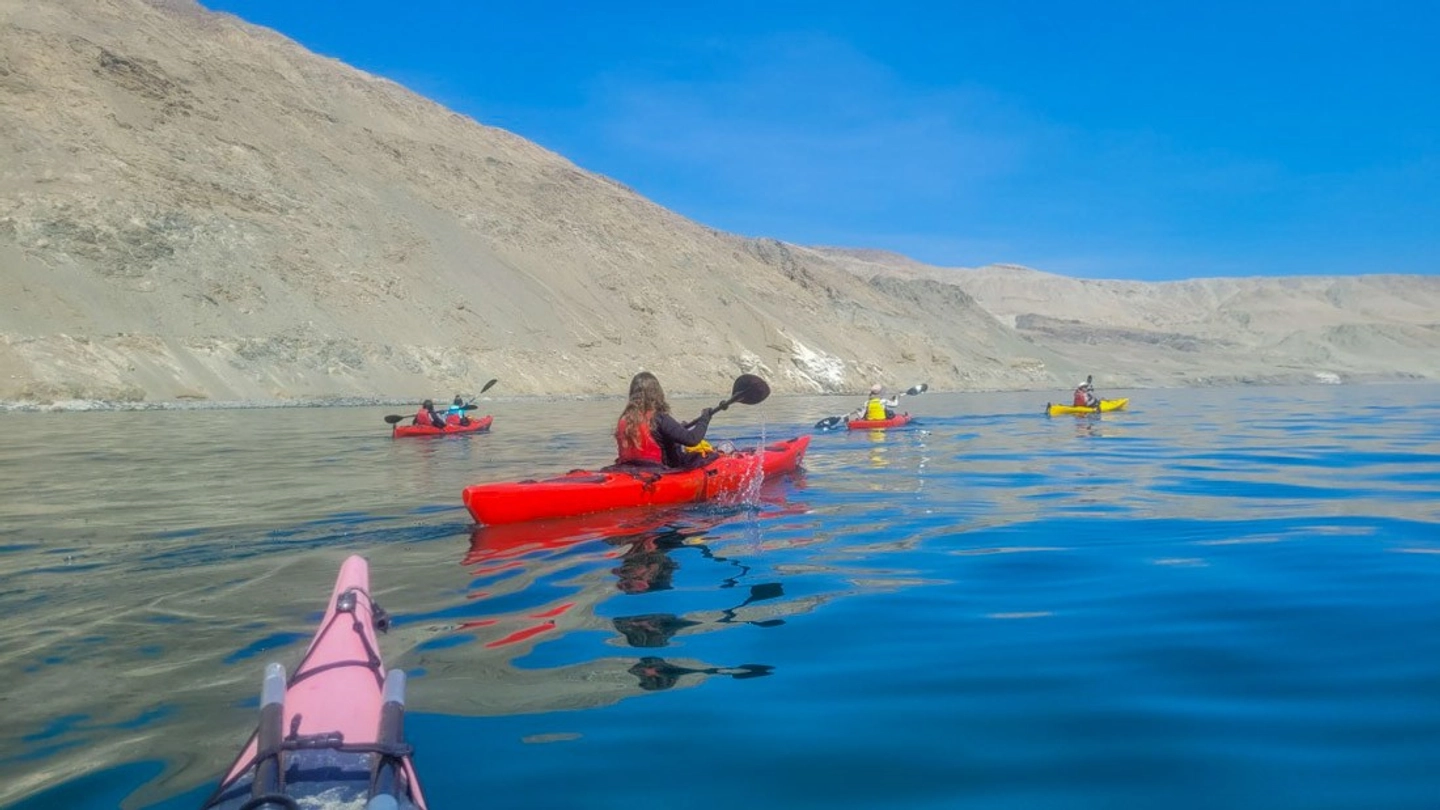 Explora en kayak la histórica ruta de Punta Angamos, descubriendo playas ocultas, fauna local y los vestigios de antiguas faenas de embarque de guano en Playa Áncora.
