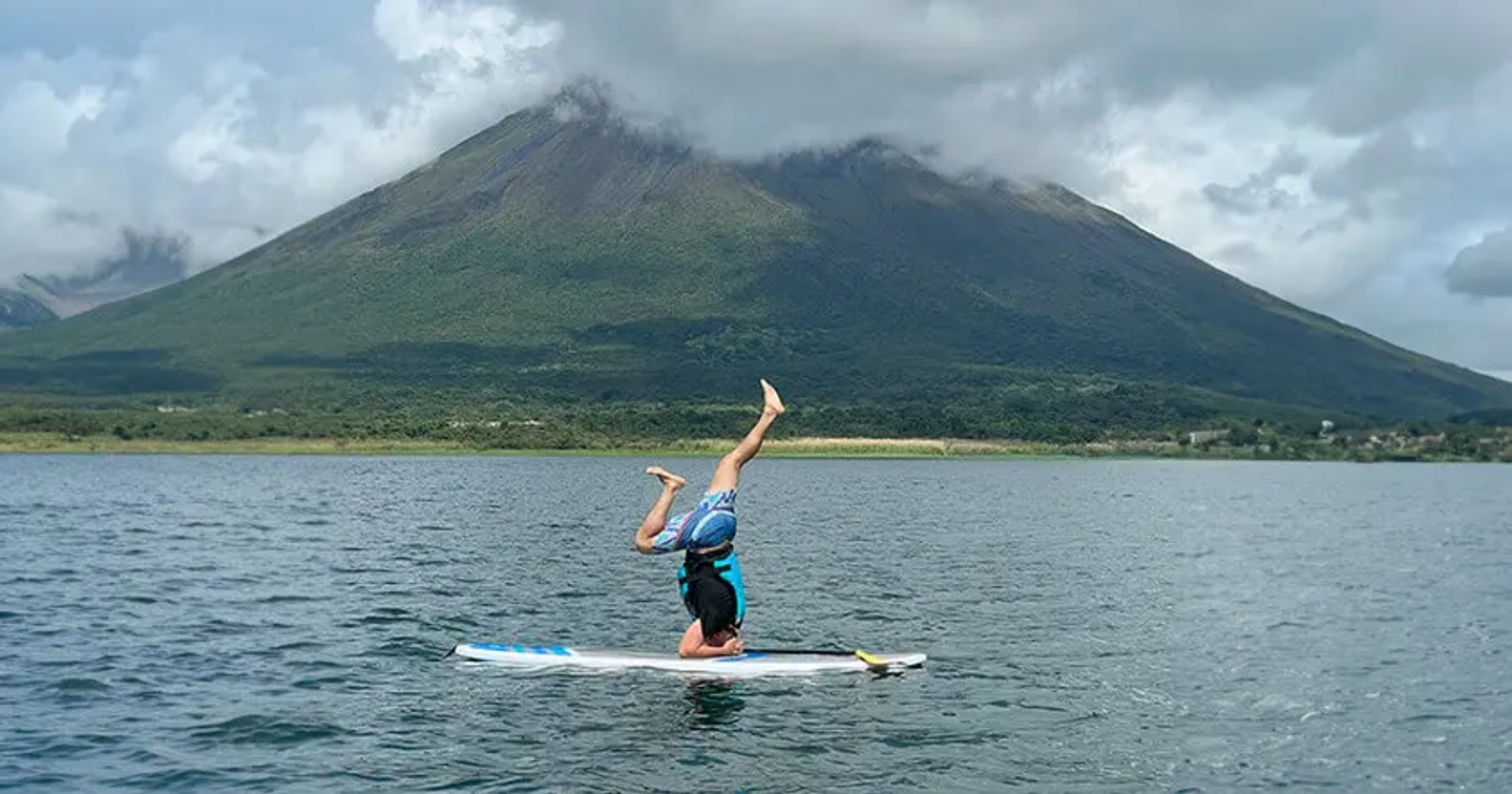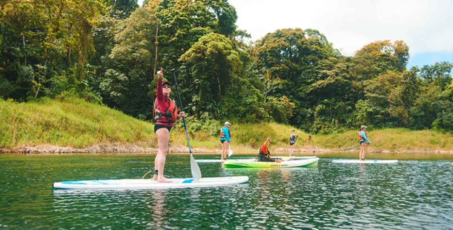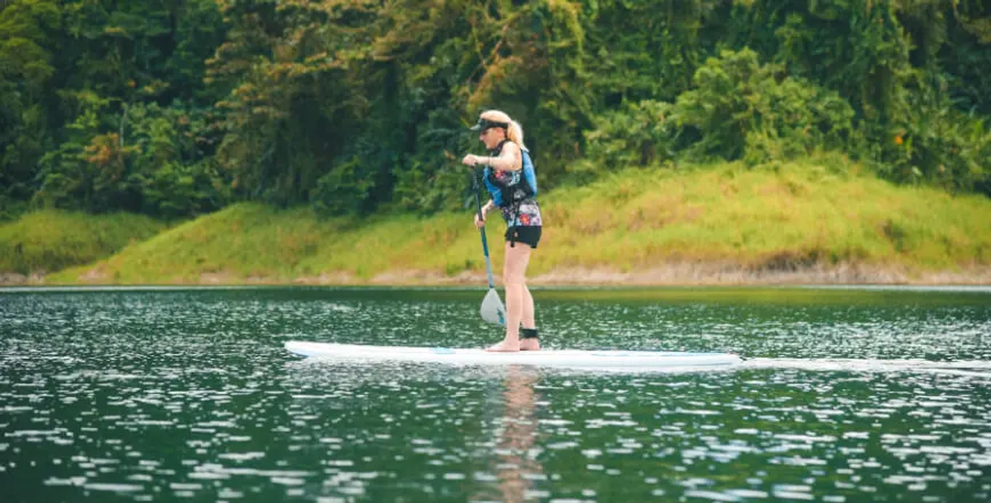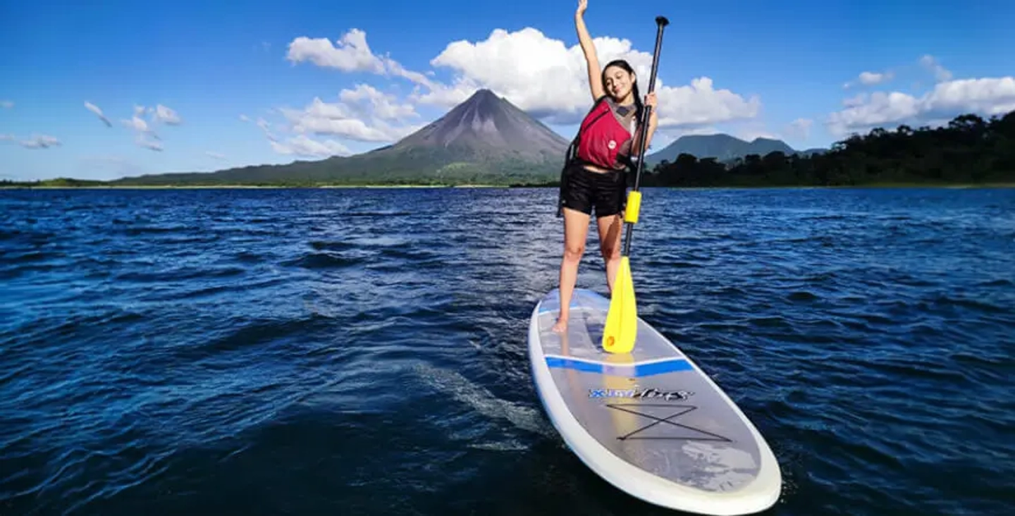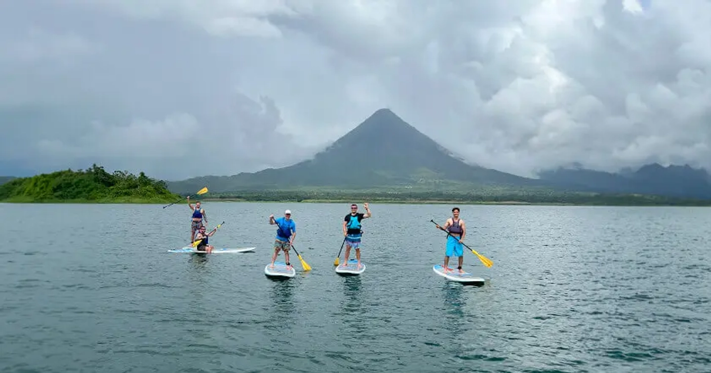 Disfruta una experiencia de paddle surf en el lago Arenal desde La Fortuna. Rema sobre aguas tranquilas rodeadas de paisajes exuberantes y observa la biodiversidad del entorno junto a un guía local.