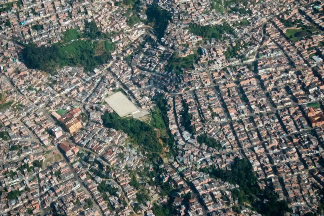Por el aire se puede observar el color de los techos de la Comuna 13. Es perfecto para entender el barrio antes de sumergirse en la vibrante energía de sus calles y murales.