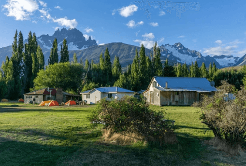 Los siguientes dos campings se ubican fuera del Parque Nacional Cerro Castillo. Estos tienen más comodidades que los de la reserva, como electricidad, wifi, agua caliente, baños, etc.