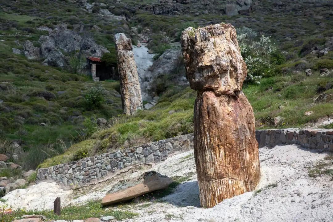 En este paisaje de aspecto lunar, gracias a la erosión del viento y el agua ha dejado al descubierto enormes troncos que, tras quedar sepultados por ceniza volcánica, se transformaron en piedra.