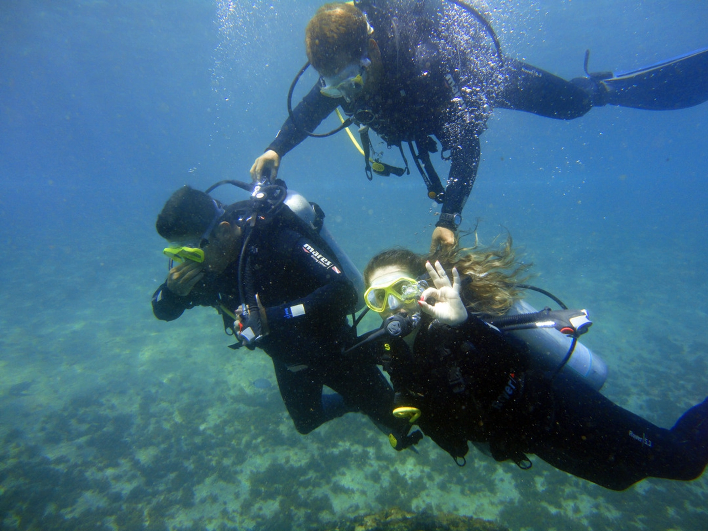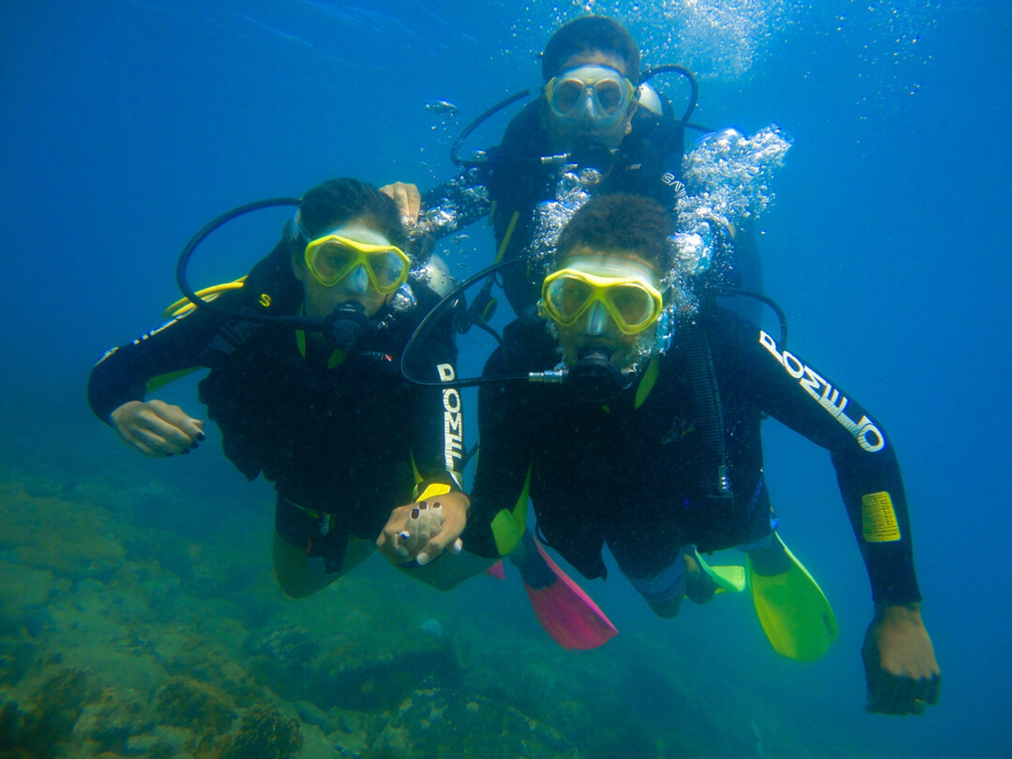 Inmersión acompañada por un instructor a lo largo de la costa derecha de la playa, entre 3 y 8 metros de profundidad, en un sector con abundante vida marina.