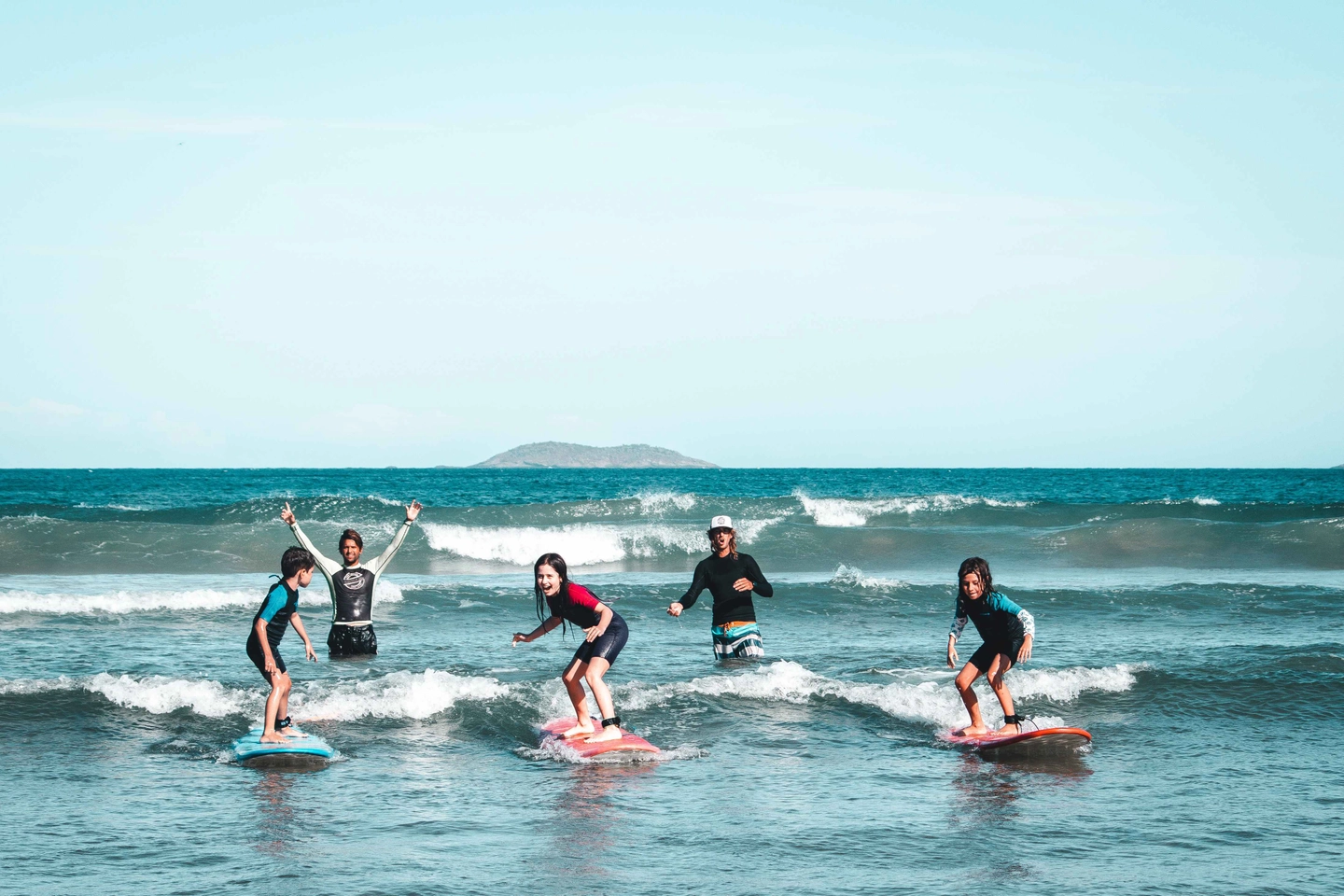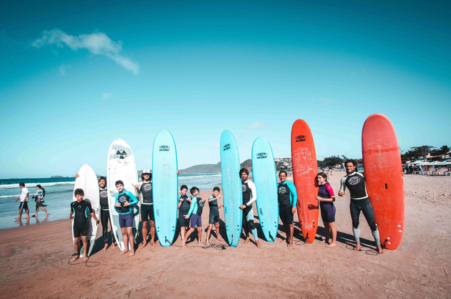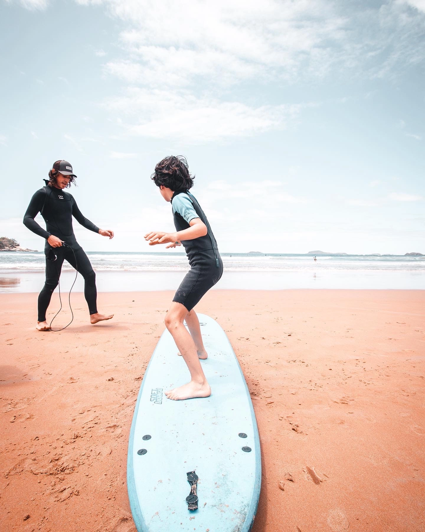 Aprende a surfear con una clase de surf en Búzios en la reconocida Praia de Geribá. La experiencia combina una introducción teórica en la arena con práctica guiada en el mar para dar tus primeros pasos sobre la tabla.