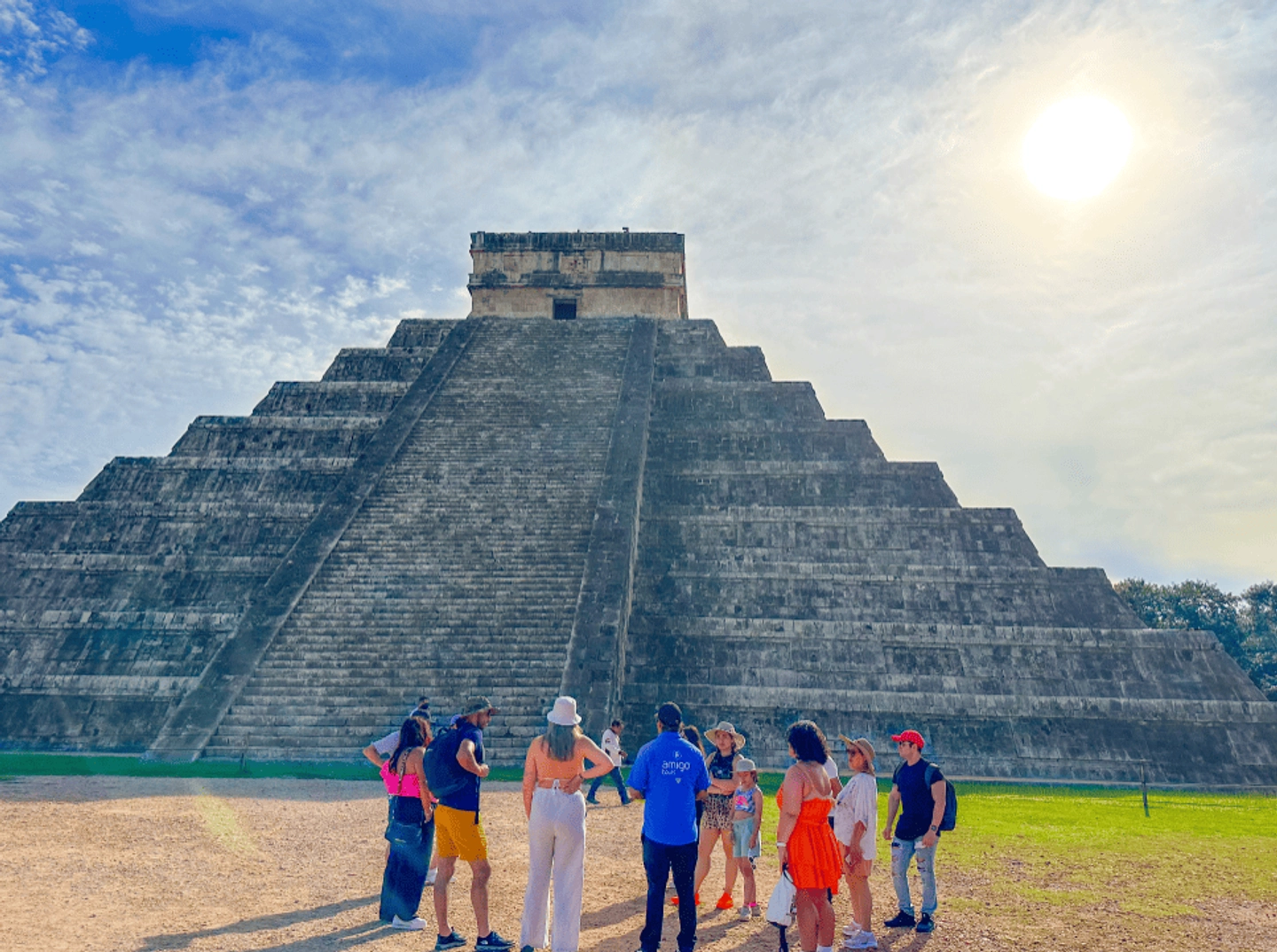 Explorarás los secretos de la cultura maya mientras admiras la imponente pirámide de Kukulcán.