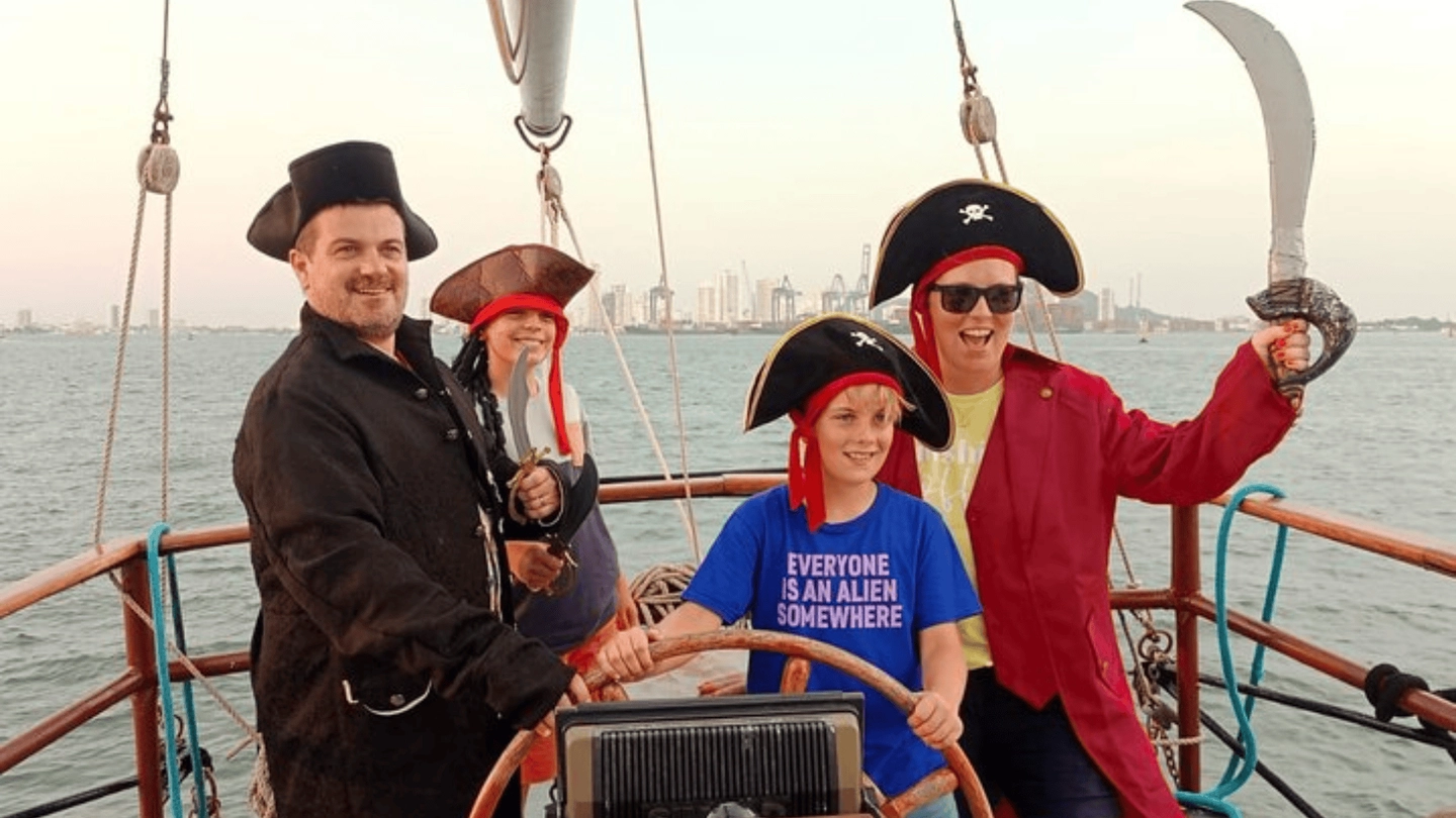 Espacio para disfrutar de fotografías con trajes de pirata como parte de la experiencia a bordo.