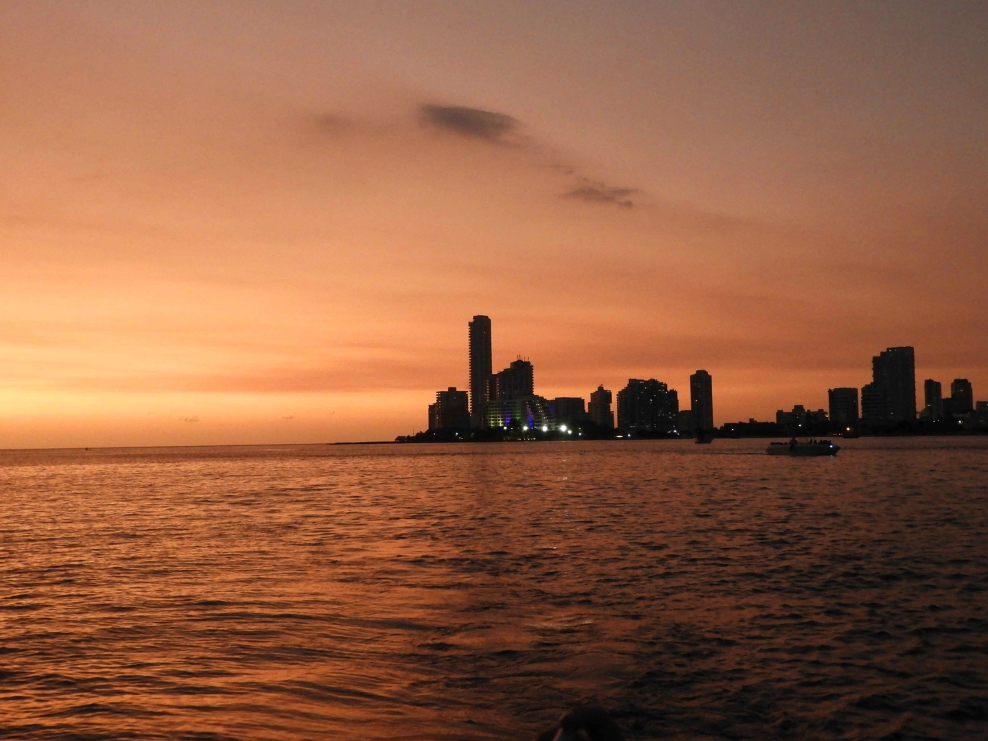 Inicio de la navegación panorámica por la bahía interna mientras se observan las vistas del skyline de Cartagena desde el mar.