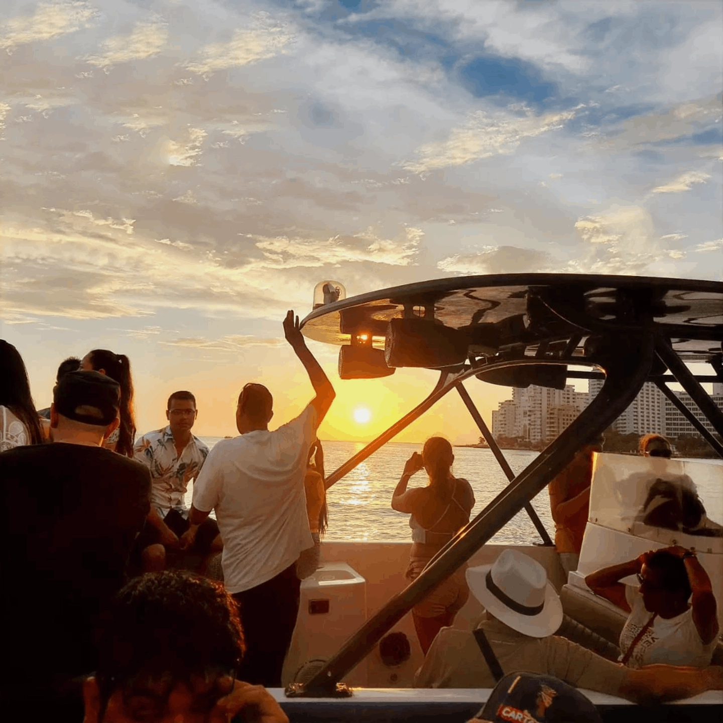 Fiesta a bordo con bebidas y música