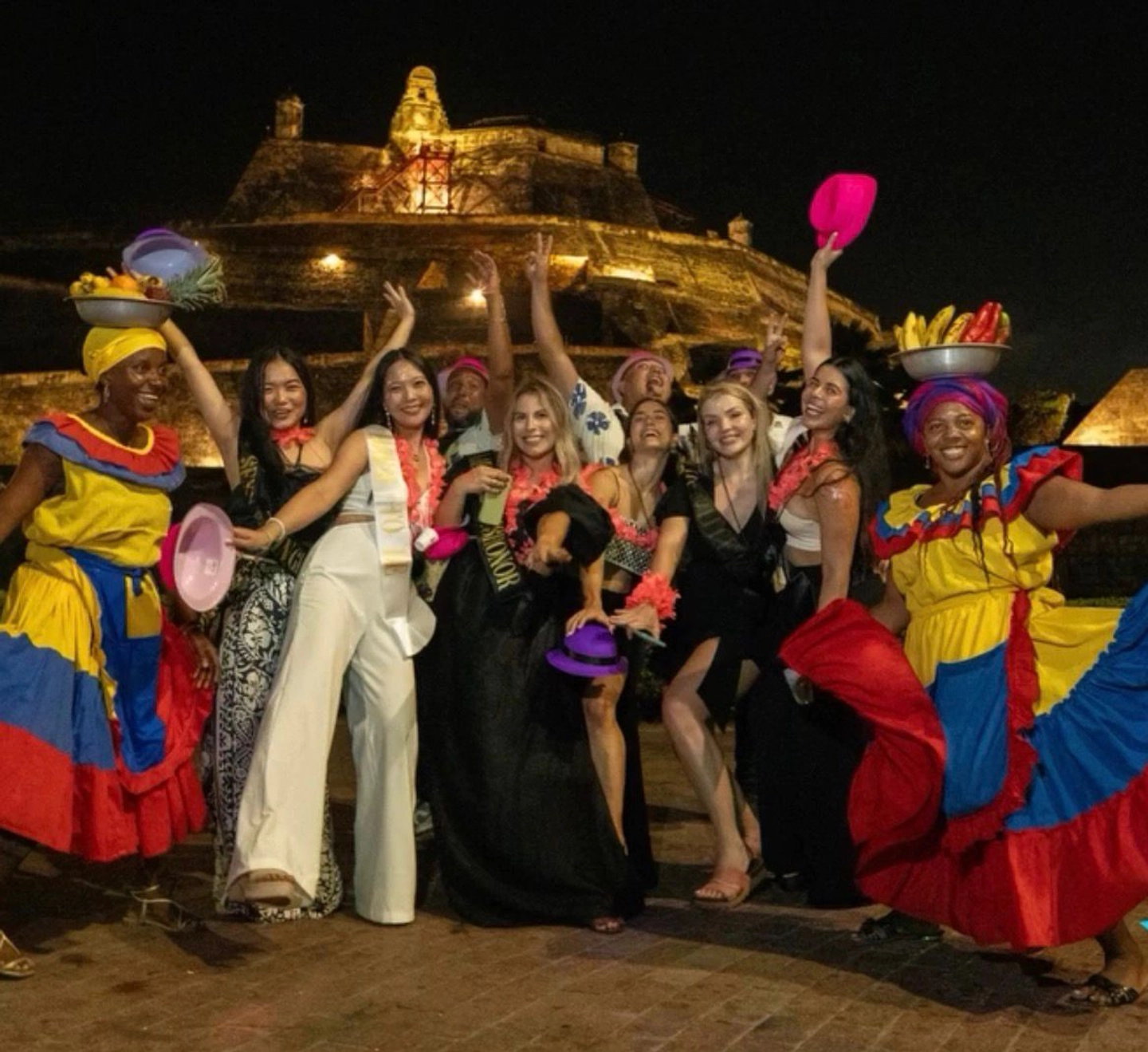 Disfruta un tour nocturno en chiva rumbera por Cartagena de Indias y recorre la ciudad amurallada en un ambiente festivo. Vive una experiencia local con música, animación a bordo y vistas panorámicas de sectores emblemáticos como Bocagrande, El Laguito y el exterior del Castillo de San Felipe. La noche continúa con ingreso a una discoteca de la ciudad para seguir disfrutando del ambiente cartagenero.