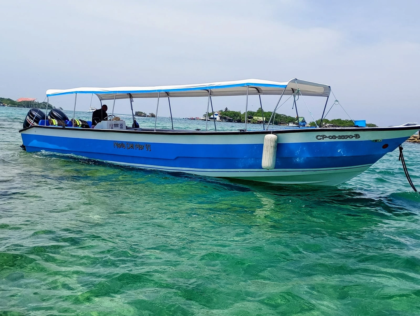 Embarque y navegación en lancha rápida con destino a Isla Grande, Isleta y eco-hoteles del archipiélago.