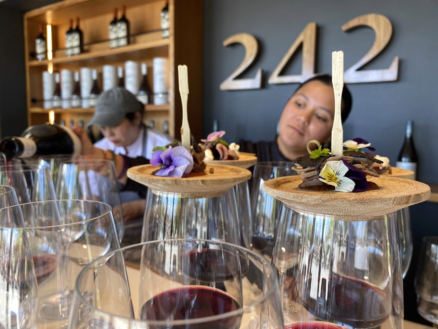 Degustación de bocados preparados para armonizar con cada vino y resaltar sus notas principales.