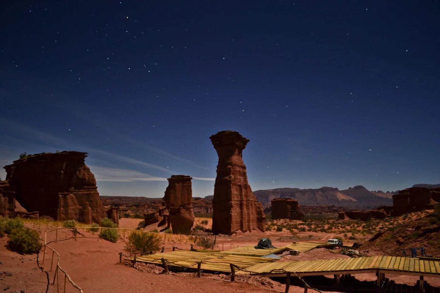 Descubre en 2 días la fascinante historia geológica y paleontológica de Argentina con una emocionante excursión desde Catamarca que te lleva a explorar Talampaya y el Valle de la Luna. Estos sitios declarados Patrimonio Natural de la Humanidad por la UNESCO te ofrecen la oportunidad única de presenciar el Periodo Triásico completo al aire libre y maravillarte con sus formaciones geológicas y paisajes impresionantes.