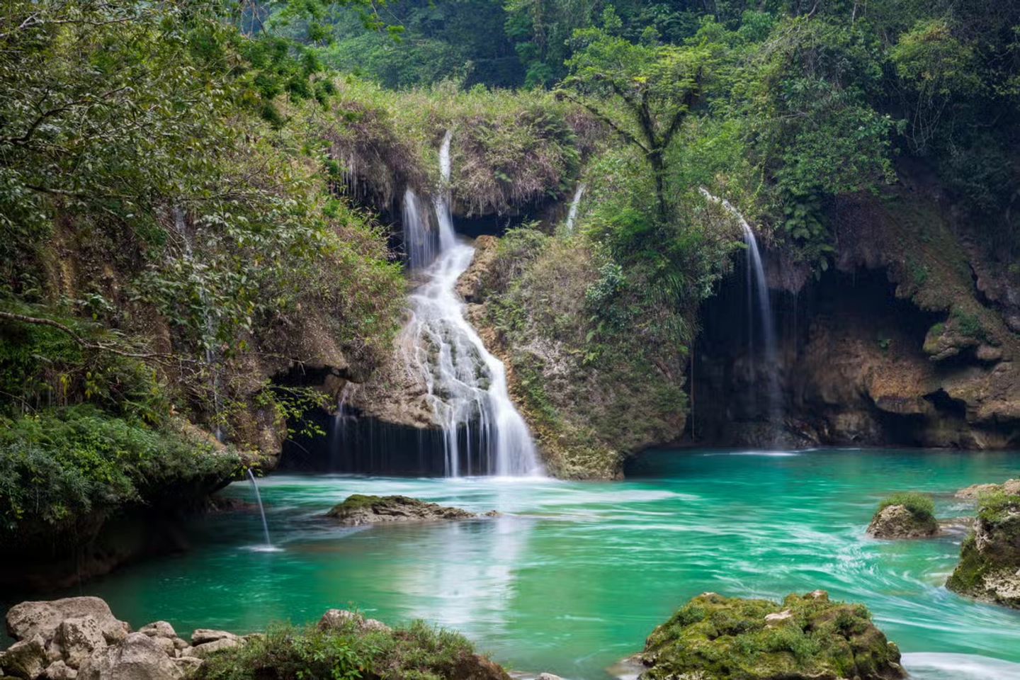 El tour de 3 días a Semuc Champey te invita a vivir una inmersión completa en la belleza natural de Guatemala. Descubre las piscinas naturales de aguas turquesas que se esconden bajo un puente de piedra caliza en el corazón del bosque tropical.