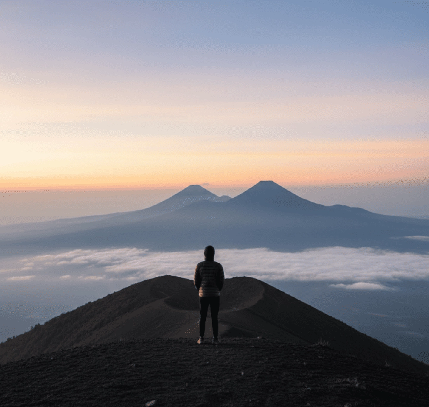 Caminata de madrugada (opcional y muy exigente) para ver el amanecer desde la cumbre de Acatenango (3,976 msnm), con vistas a la cadena volcánica.