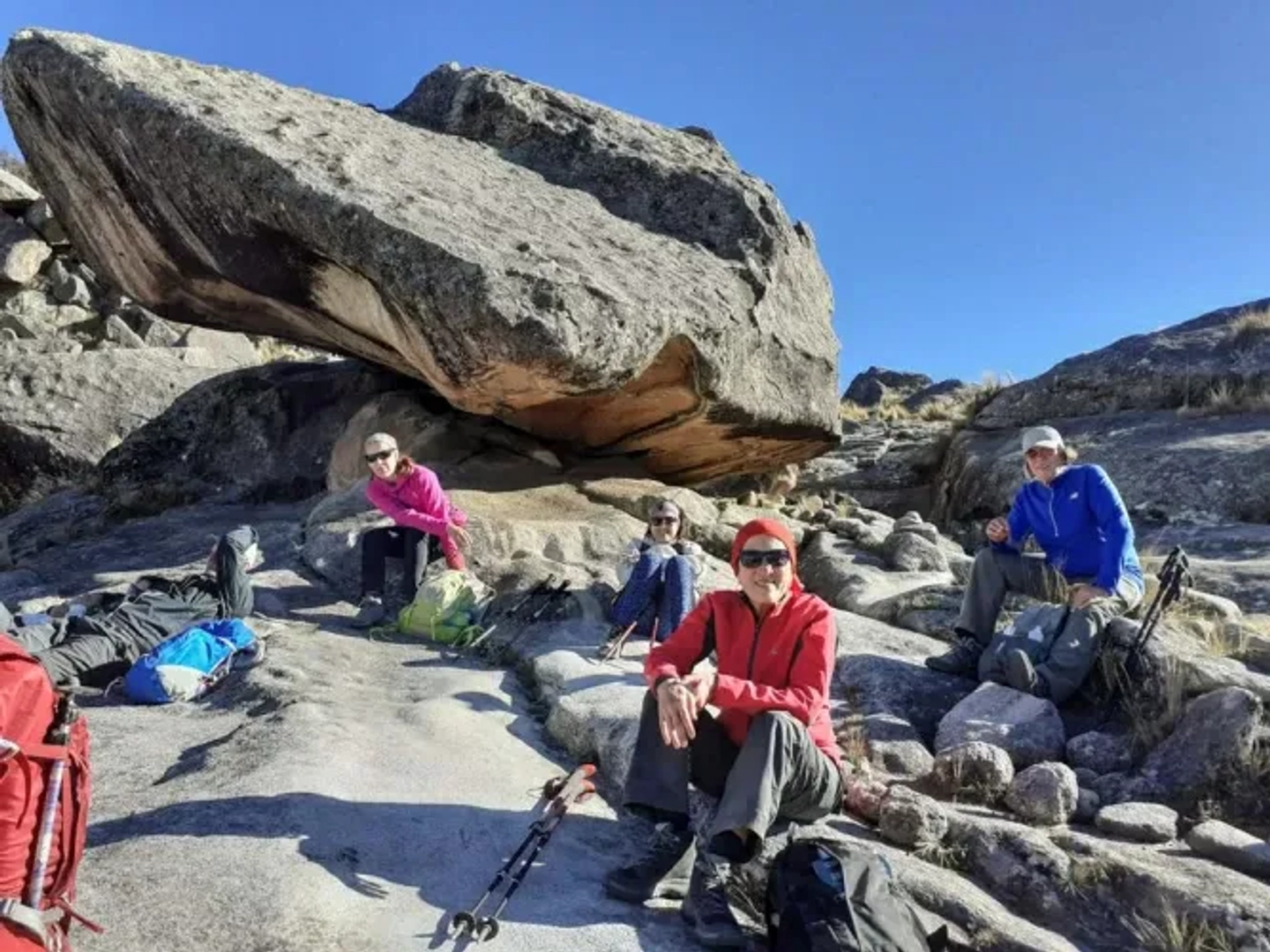 - Ropa de Trekking bajo el sistema de capas (primera piel, abrigo y protección impermeable/cortavientos) Botas de trekking, Gorra/sombrero para sol, Buff gafas de sol y medias técnicas sintéticas o de lana.