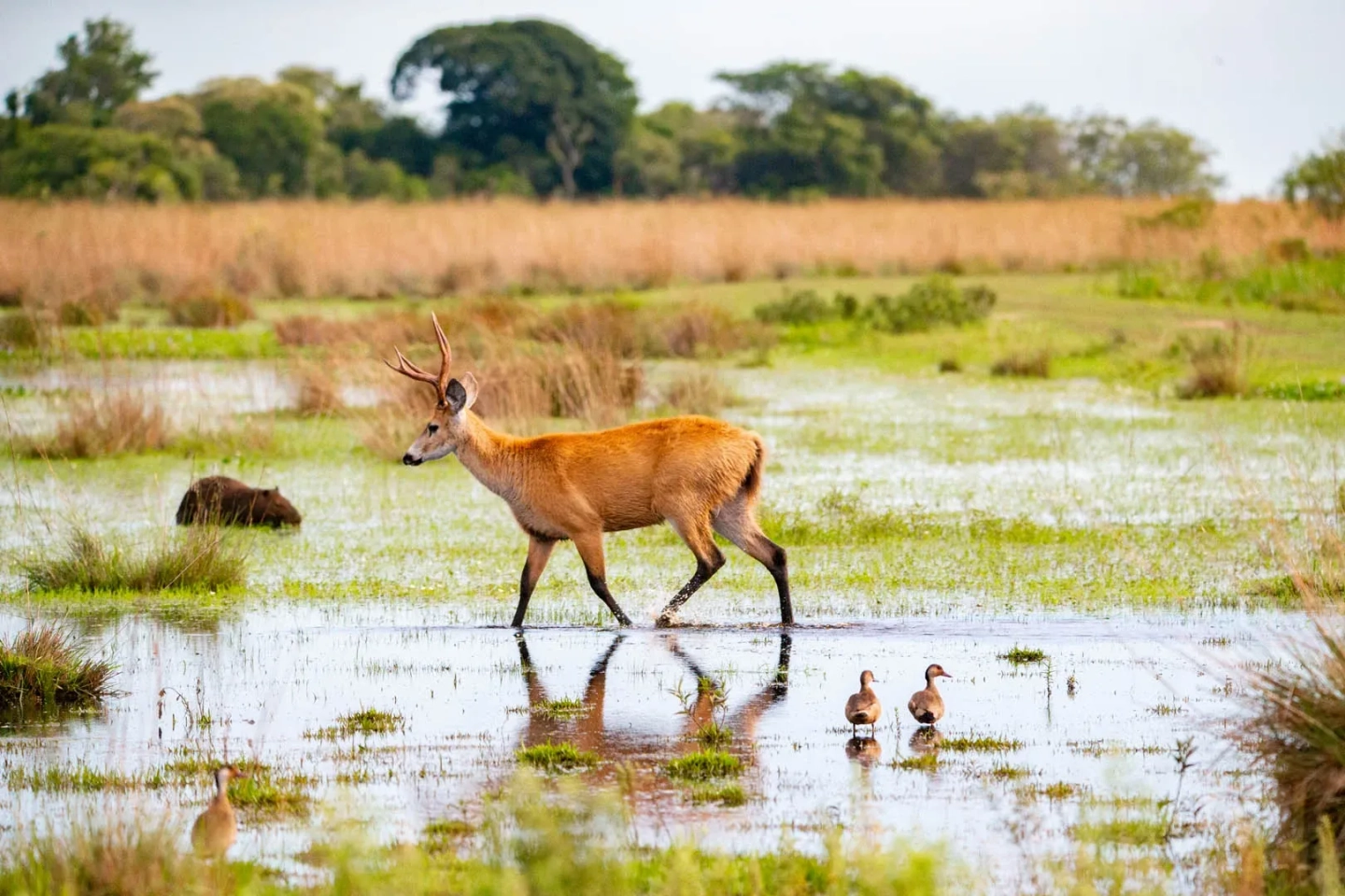 La aventura inicia en el Portal Cambyreta, desde donde nos adentraremos en el corazón de los Esteros del Iberá. A través de un recorrido guiado tipo safari, exploraremos los diversos paisajes del humedal en busca de su excepcional biodiversidad. Mantén tu cámara lista para capturar imágenes de la fauna autóctona en su hábitat natural, aprendiendo sobre la ecología de uno de los ecosistemas más importantes de Latinoamérica.