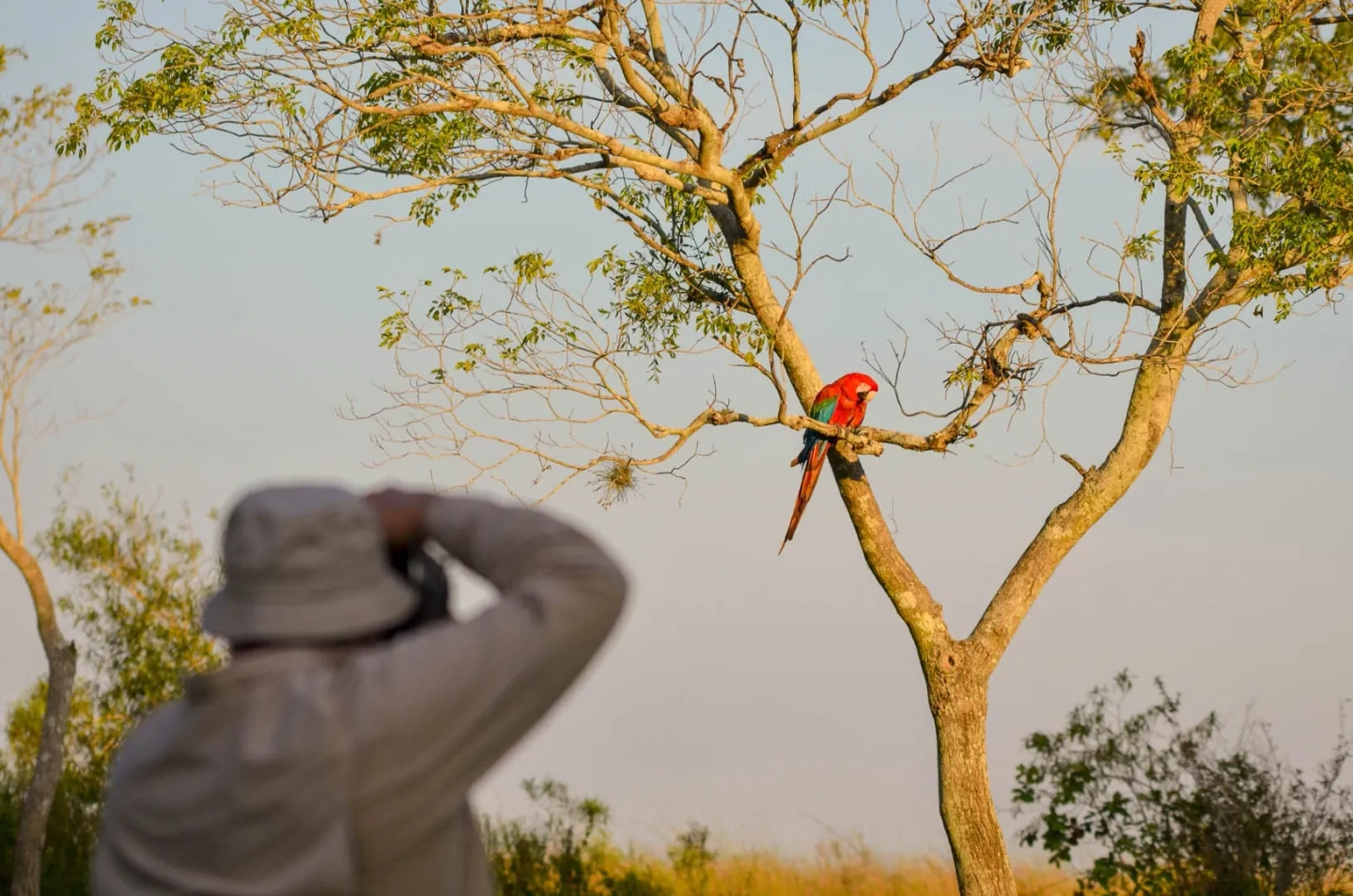 Continuaremos la excursión enfocándonos en la rica avifauna de la región. El objetivo principal será el avistamiento del espectacular Guacamayo rojo en pleno vuelo, un verdadero símbolo de los proyectos de conservación. Este segmento del viaje está diseñado para una inmersión total, permitiéndote conectar profundamente con la naturaleza, disfrutar de la tranquilidad del entorno y apreciar la inmensidad de los paisajes de los esteros.