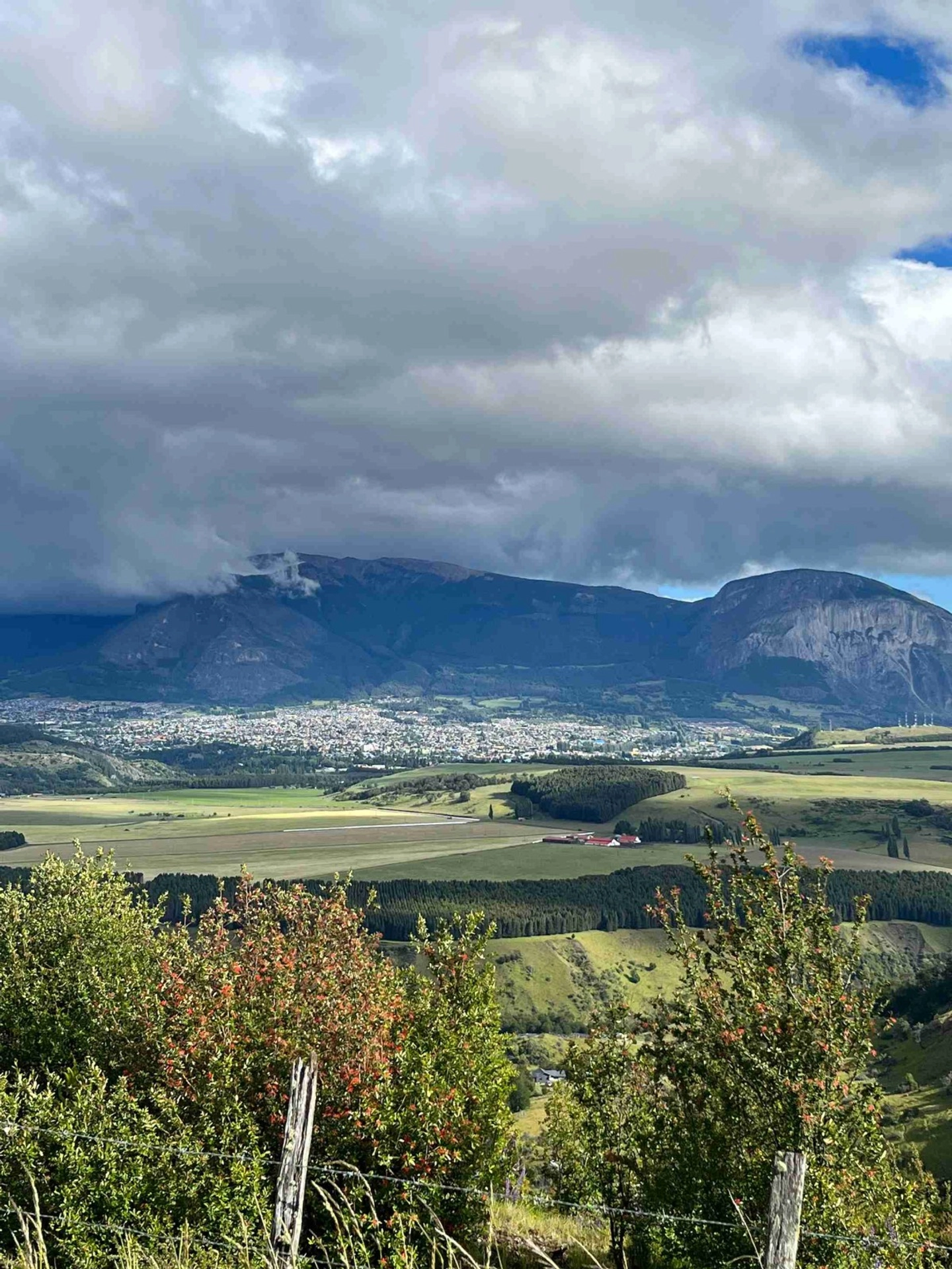 Disfrutamos de una vista única de la ciudad de Coyhaique desde el Mirador Marchant.