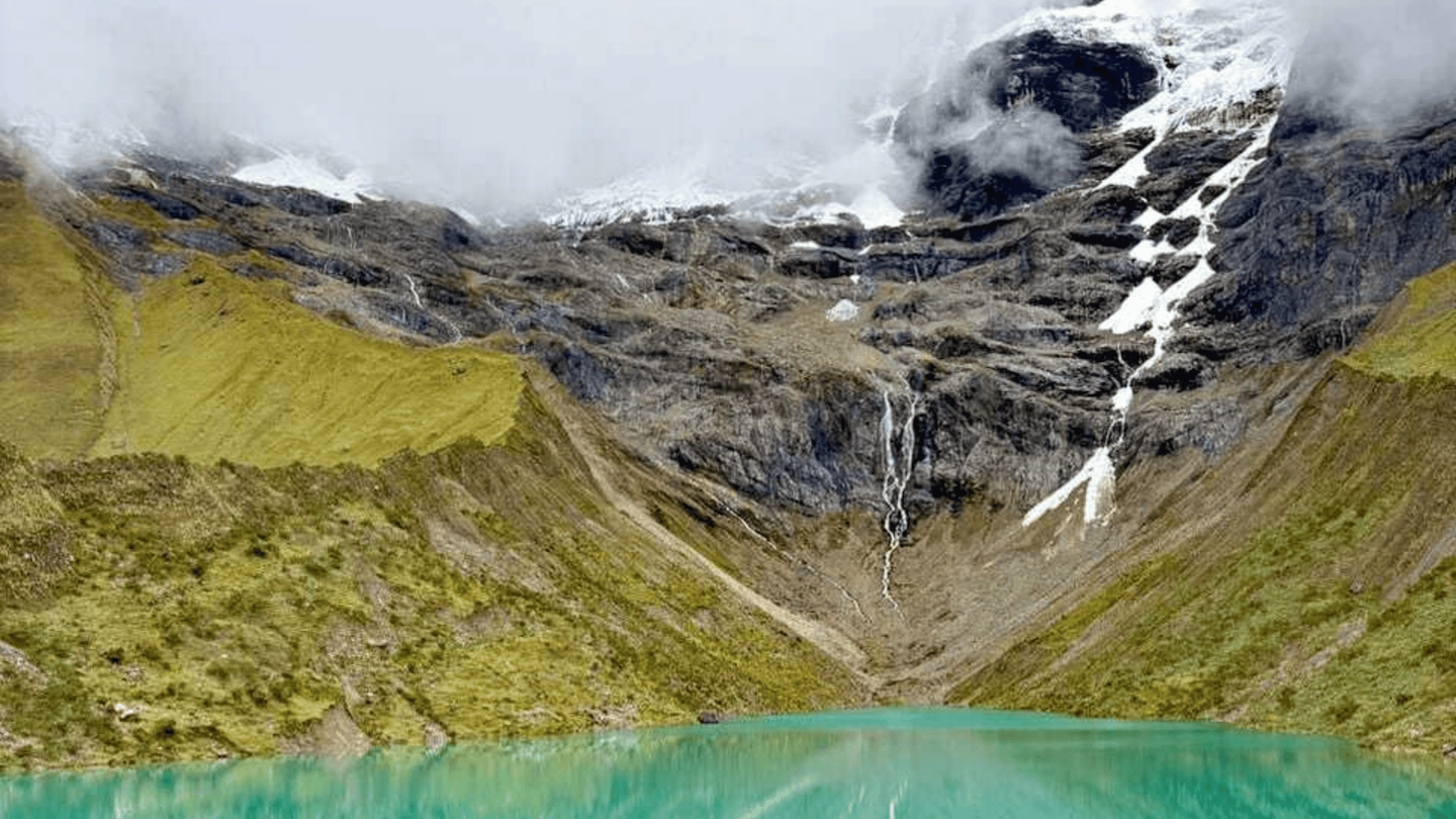 Ascenso por sendero andino durante aproximadamente 1.5 a 2 horas hasta alcanzar la laguna, con vistas panorámicas del entorno montañoso.