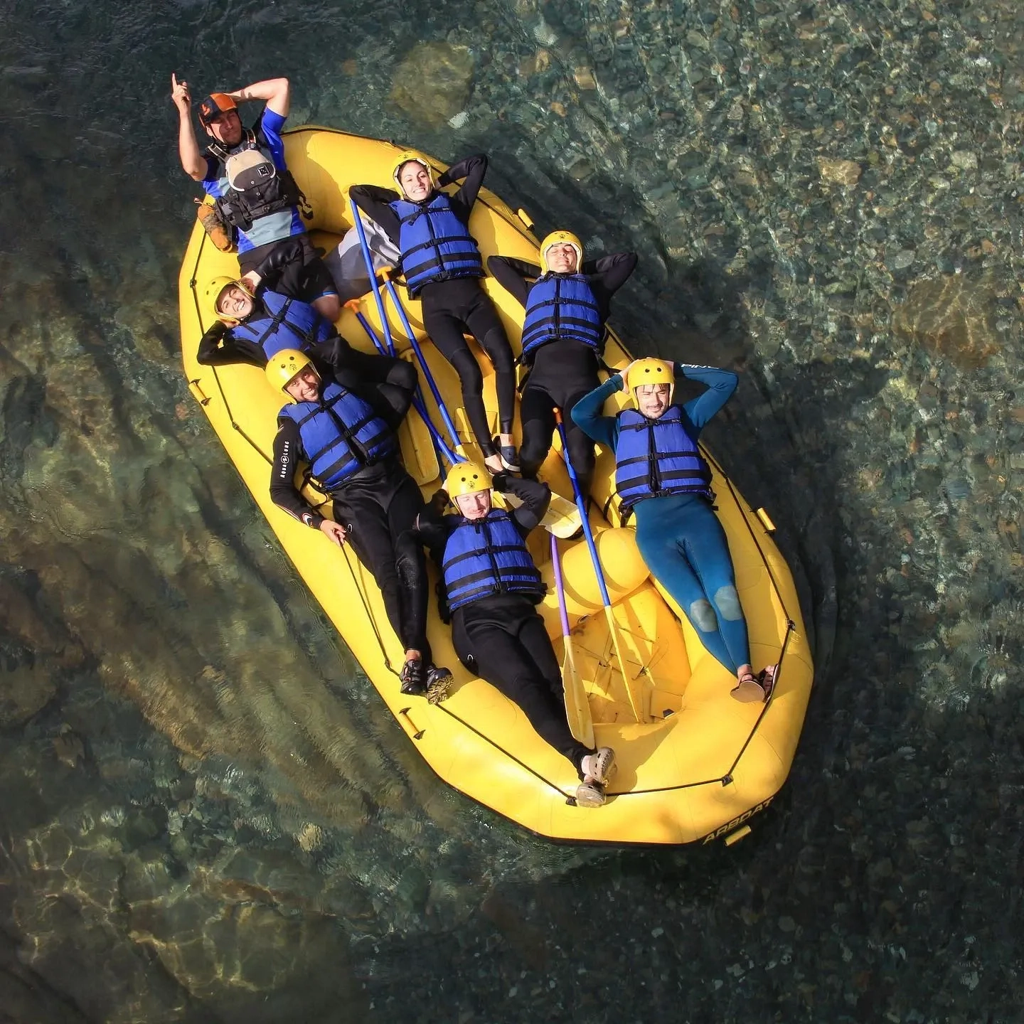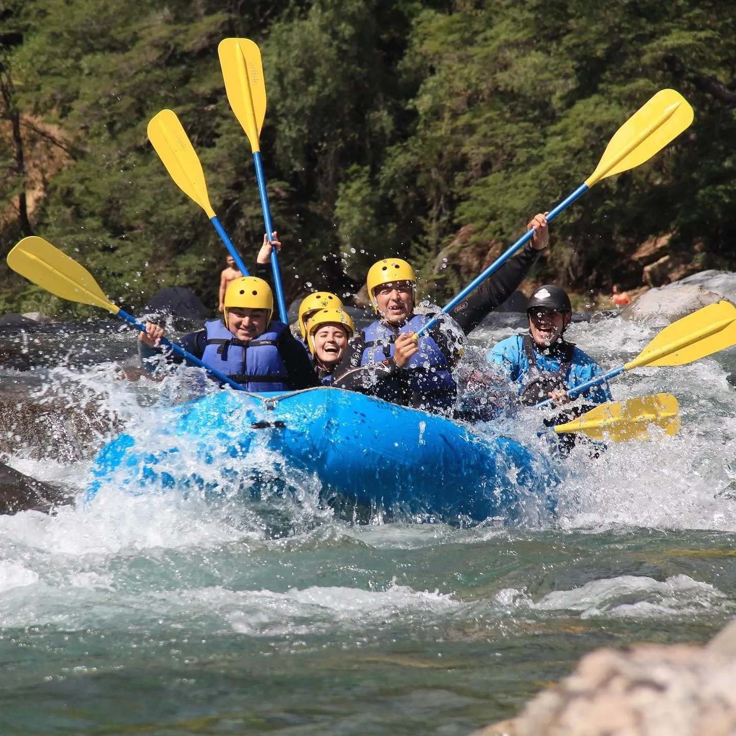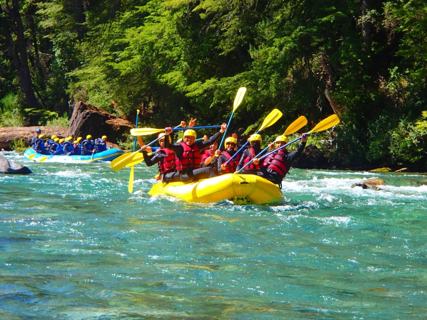 - Equipamiento completo de rafting: remo, salvavidas, casco y neopreno (mangas y piernas largas)