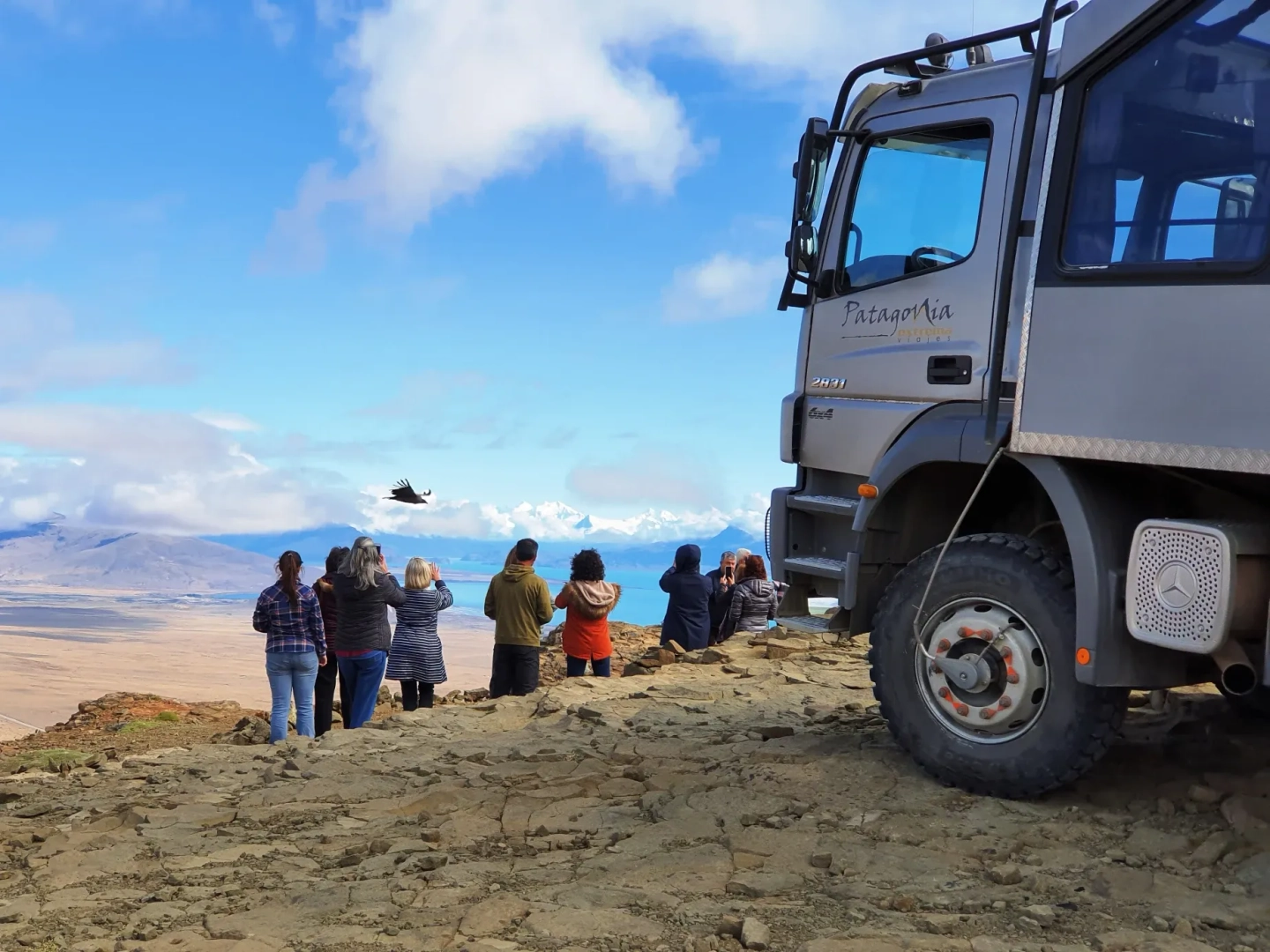 Iniciamos con el pick up por los hoteles en El Calafate para, en tan solo minutos, comenzar el ascenso por el cordón huyliche.