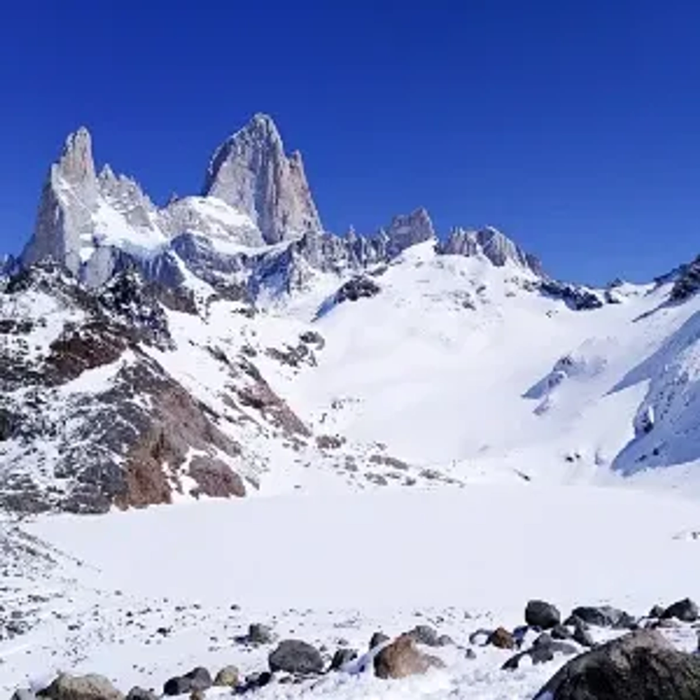 - No olvide su DNI / Pasaporte o Cédula de Identidad. SE RECOMIENDA QUE LLEVEN: Una botella de agua fría. Snack (turrones o barritas de cereal) . Un termo con un té caliente. Un par de medias de repuesto, guantes y gorro. Linterna o celu con batería por si oscurece. Mochila liviana. Zapatillas de trekking si son a los tobillos mejor y que ajusten bien para no perder crampones y ropa impermeable. Celular con batería para usar la linterna por las dudas. IMPORTANTE: A partir de Junio salida a Laguna de los Tres, siendo el nuevo horario de pick up, 7:00 am. El mismo se mantiene hasta el 31/07. Actividad de dificultad alta, sólo apta para personas entre 16 y 50 años, sin guía. 8 a 9 horas Tiempo total ida y vuelta 20 kilometros de trekking en montaña con 800 metros de altimetría, ida y vuelta. Se recomienda llevar la indumentaria acorde para el tipo de actividad y clima al momento de hacer la actividad. Nunca está de más llevar agua y snack para recuperar las energías. No subestimes el clima: lleva protección solar, anteojos, ropa acorde y/o abrigo o gorra para el sol según se requiera