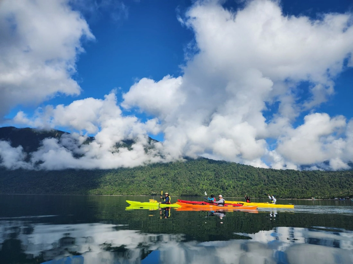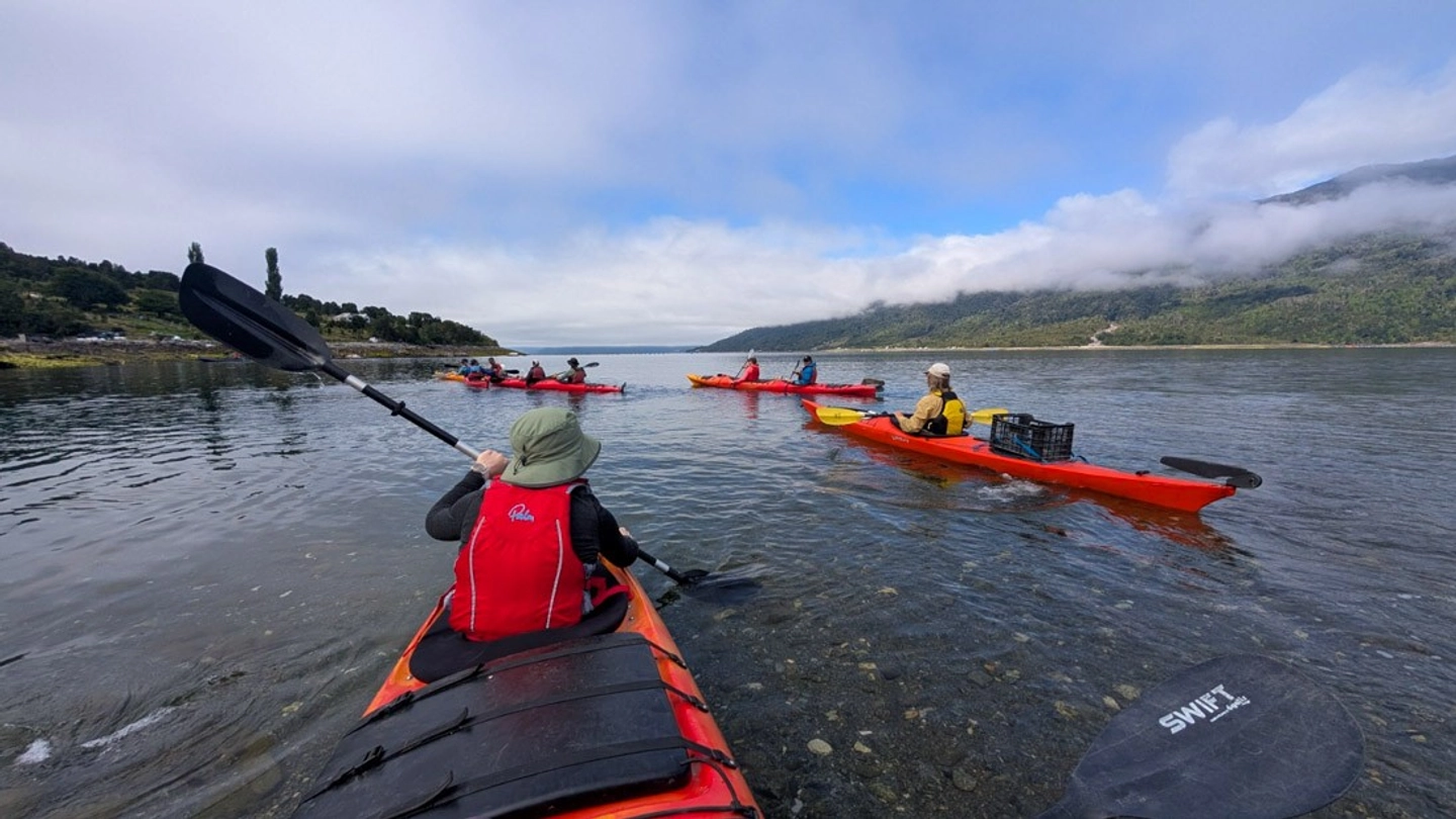 Travesía en kayak por la bahía de Hornopirén, recorriendo un humedal urbano único.