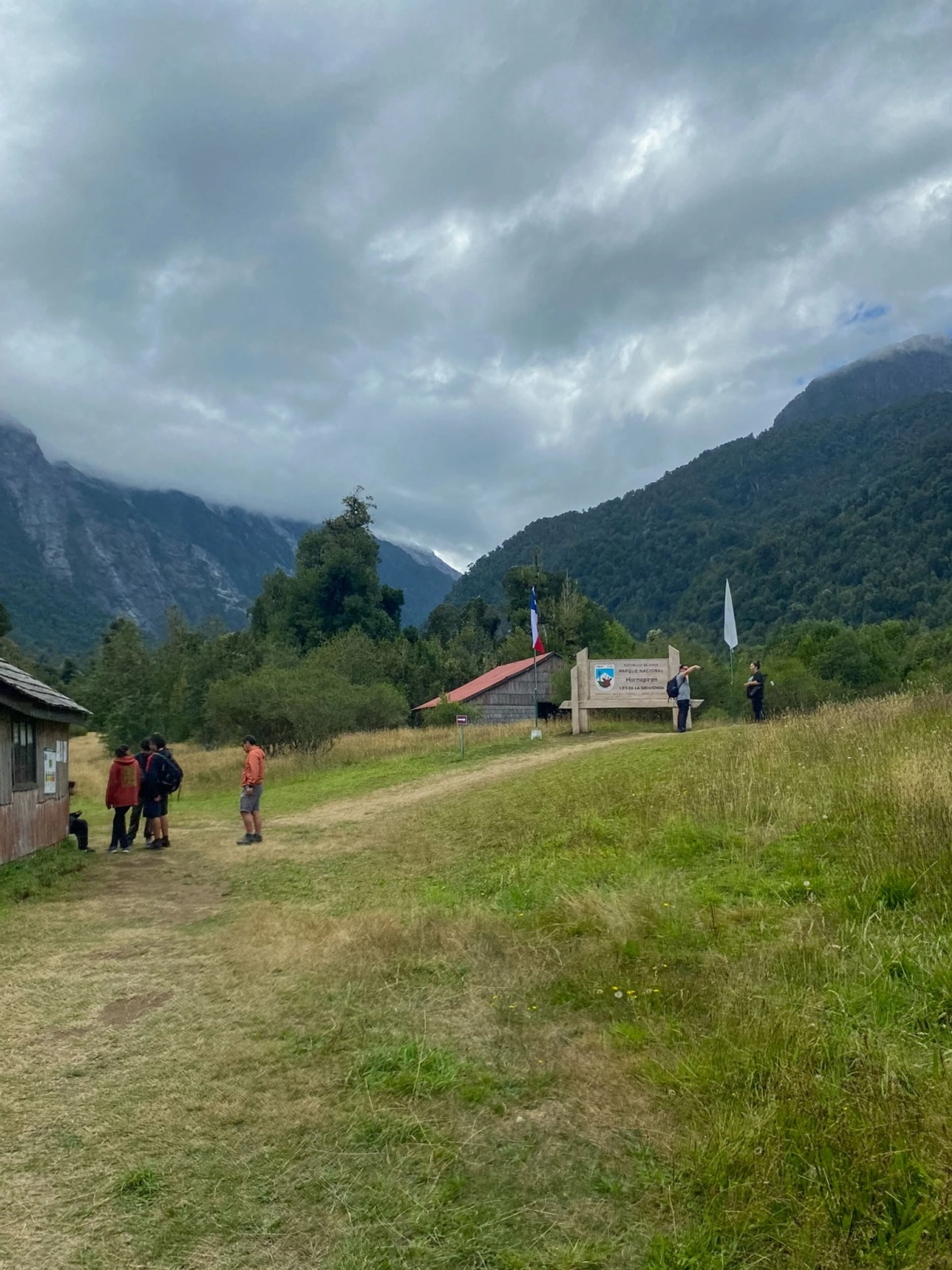 Inicio del recorrido en la Plaza de Hornopirén, traslado en vehículo hasta el sector del Puente Río Blanco.