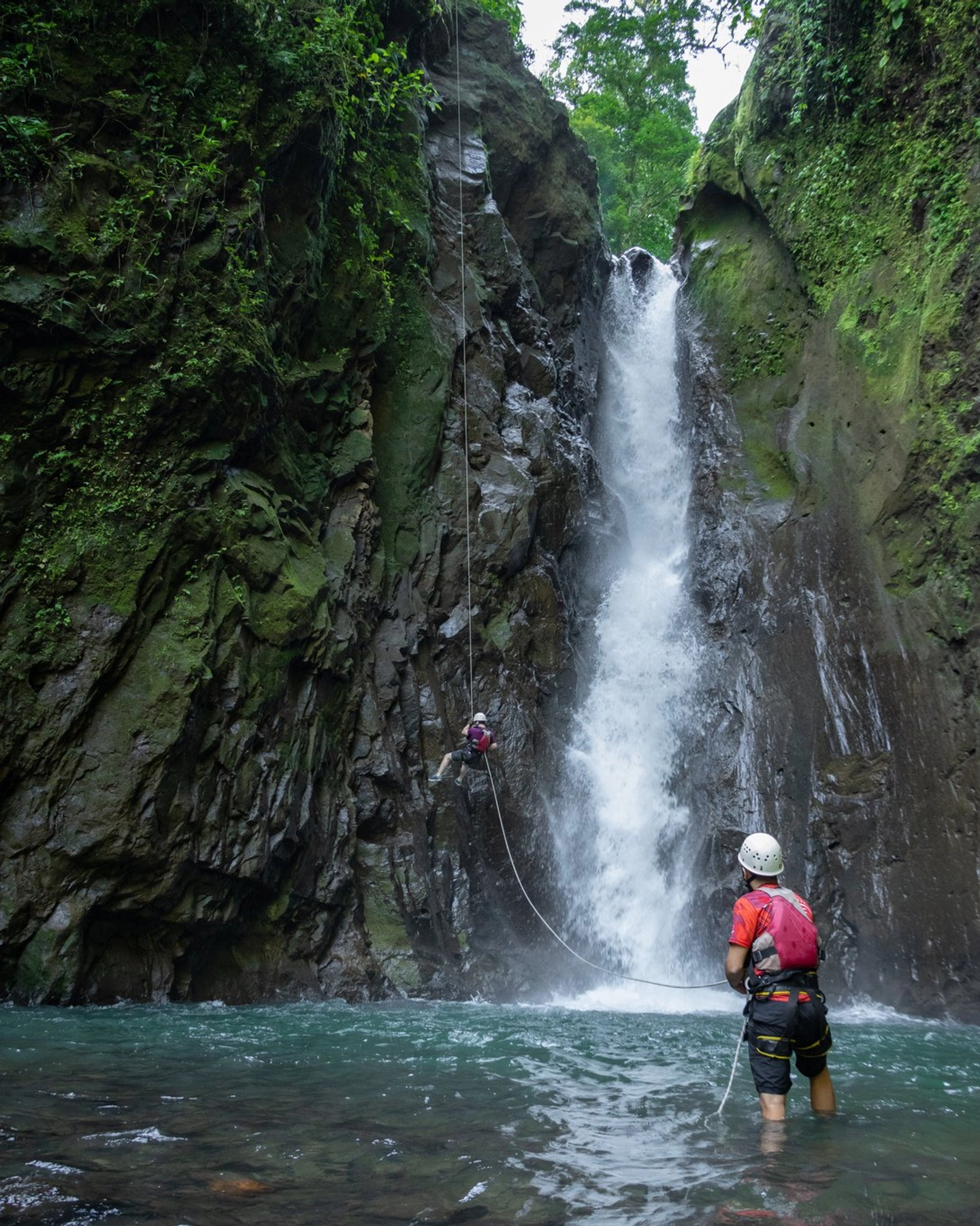 Vive la aventura principal descendiendo en *rappelling* la cascada de 40 metros (140 pies), saltando desde distintas alturas y explorando el cañón, con la asistencia de un guía en todo momento.