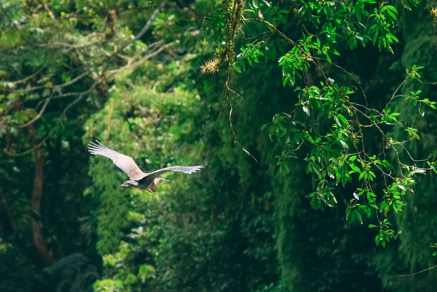 Navegación tranquila de dos horas observando fauna, flora y disfrutando del paisaje del bosque lluvioso. Incluye pausa para frutas.