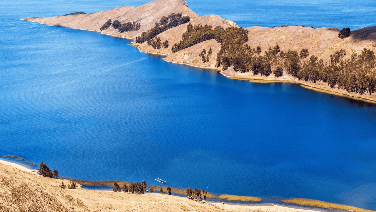 1 HoraTraslado en lancha privada a la parte sur de la Isla del Sol, disfrutando del paisaje lacustre y las montañas circundantes.