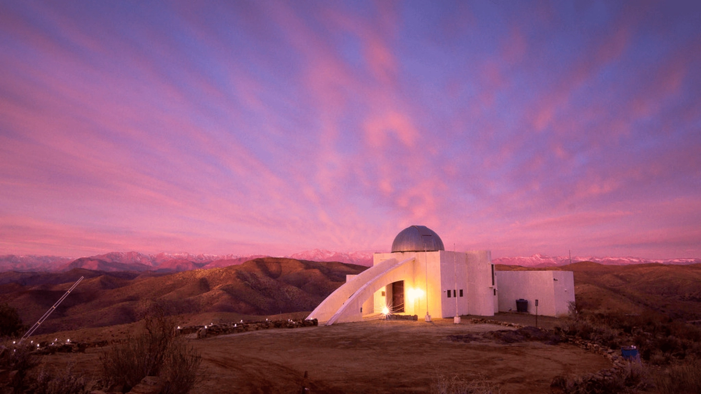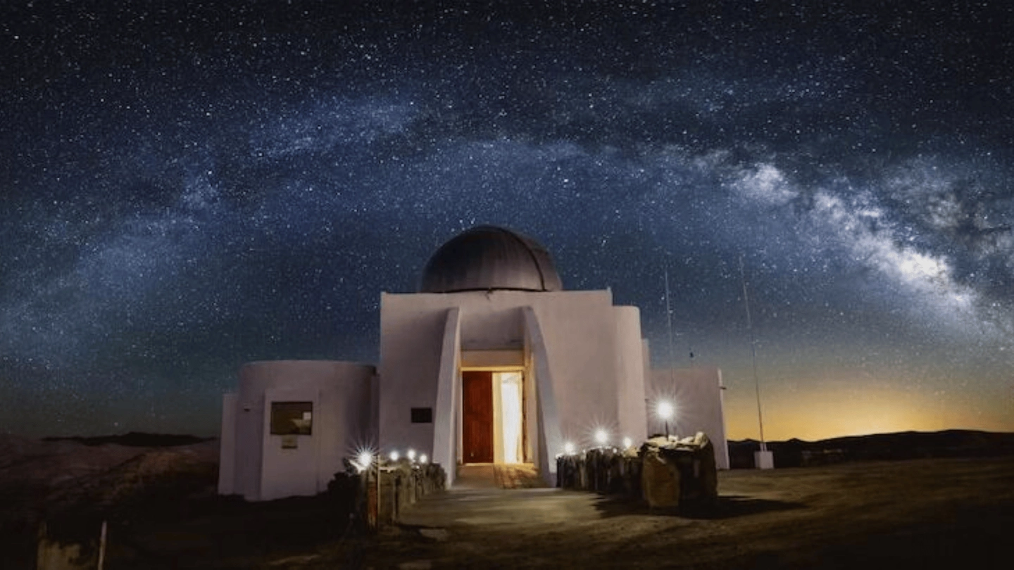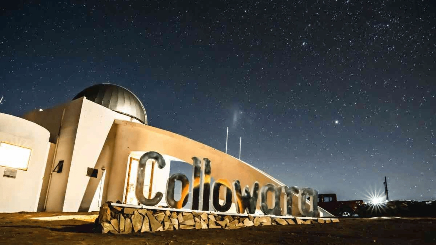 Trayecto por la precordillera hasta alcanzar el observatorio, ubicado a 1300 metros de altitud, donde comienza la experiencia con vistas panorámicas de 360 grados y cielos de baja contaminación lumínica.