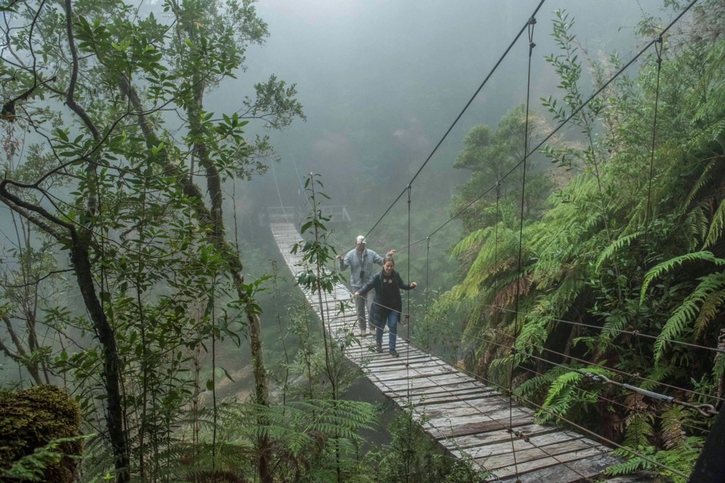 30 MinutosIniciamos una caminata por el bosque nativo hacia el impresionante puente colgante que cruza sobre una cascada espectacular. Disfrutamos del paisaje, tomamos fotos y continuamos el circuito de regreso.