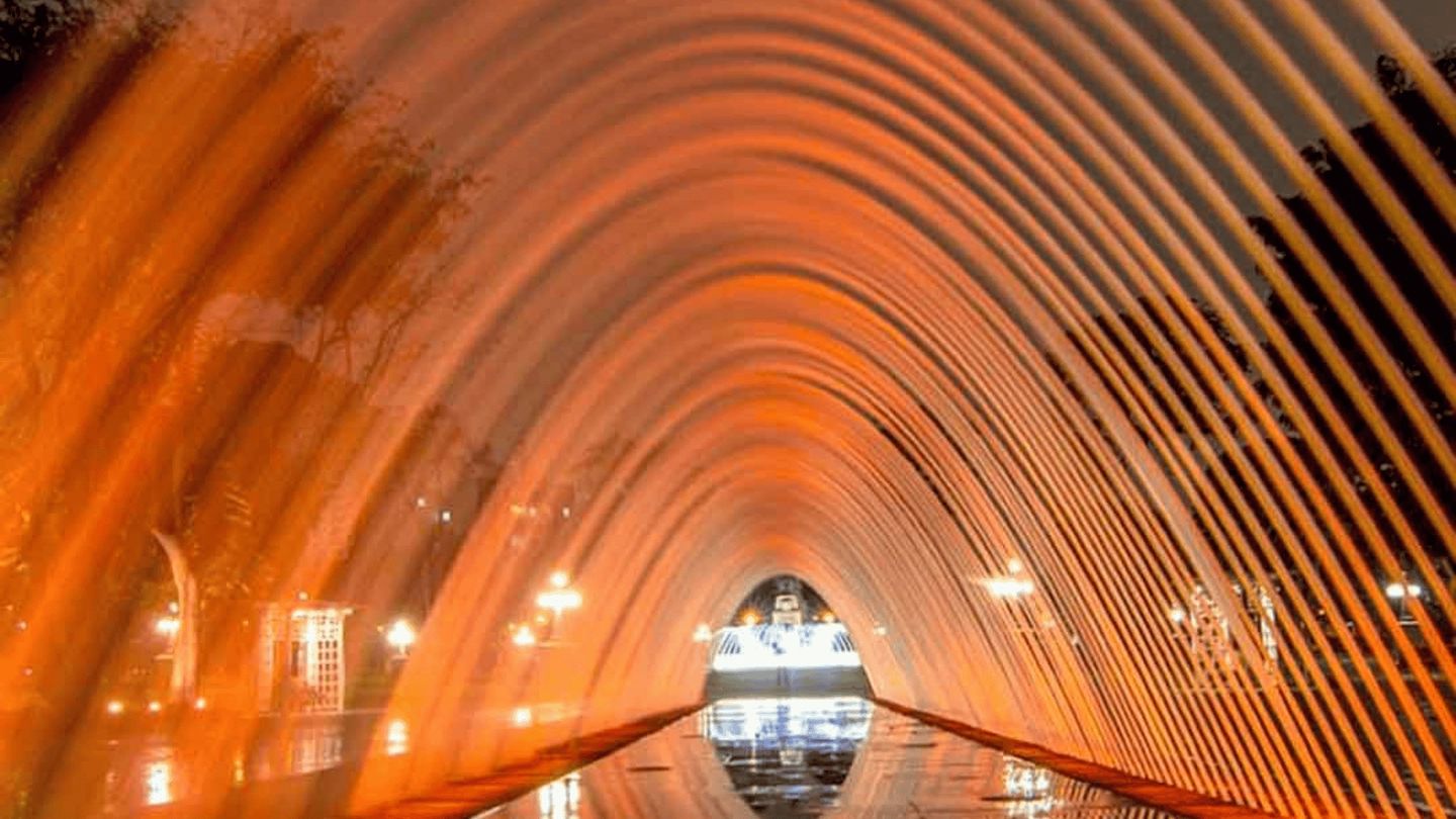 Visita nocturna al parque para disfrutar de un espectáculo de fuentes iluminadas, proyecciones y música.