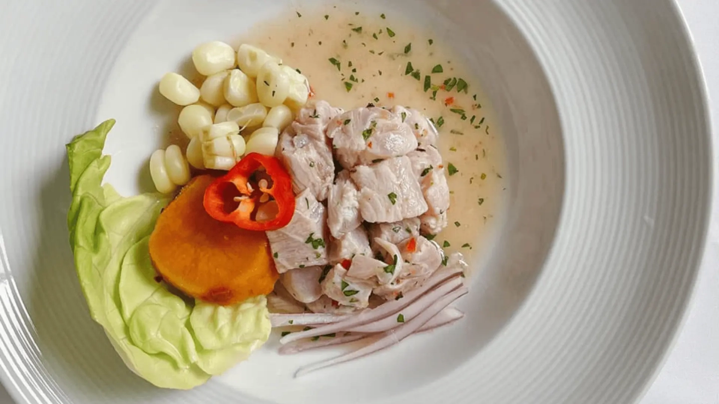 Clase práctica para aprender a preparar ceviche con pescado fresco, limón, cebolla, cilantro, camote y maíz.