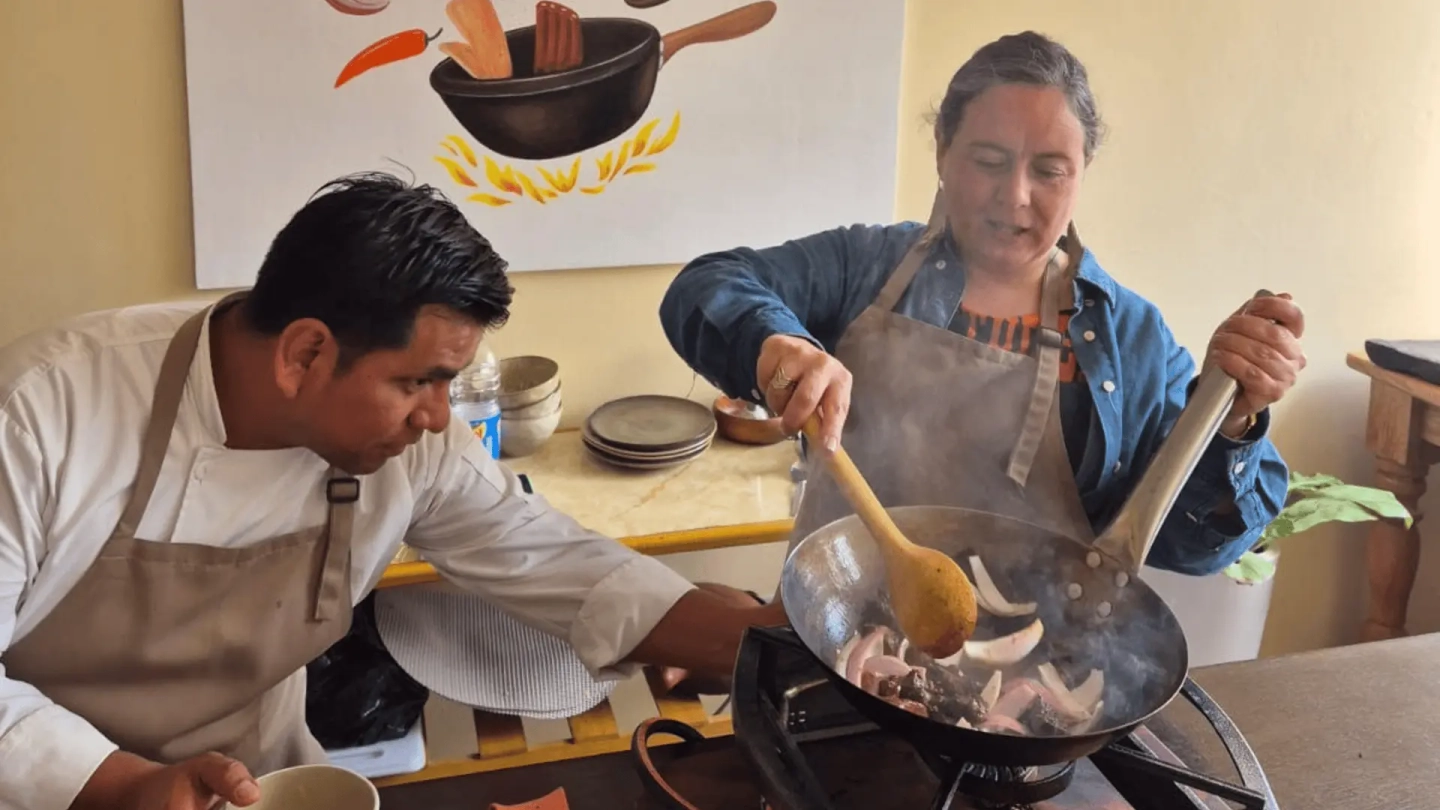 Momento para disfrutar las preparaciones realizadas durante la actividad en una experiencia culinaria nocturna.