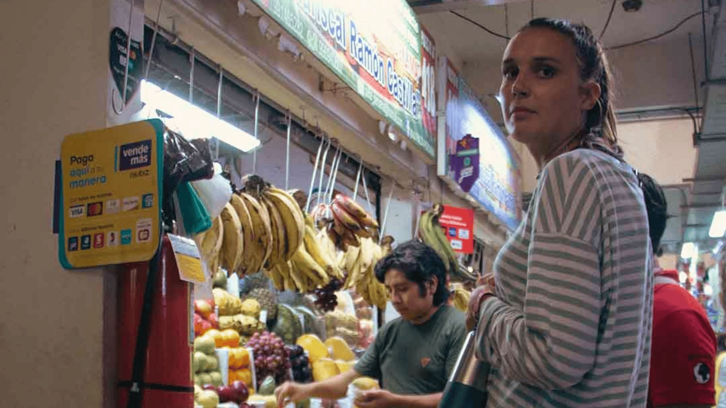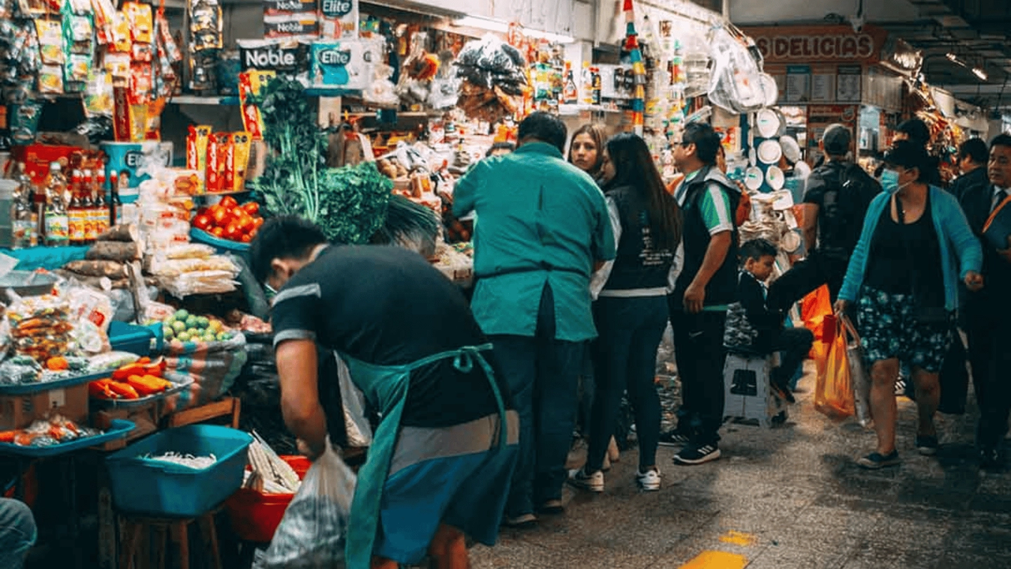 Exploración de pasillos con productos locales, ingredientes tradicionales y contacto con comerciantes