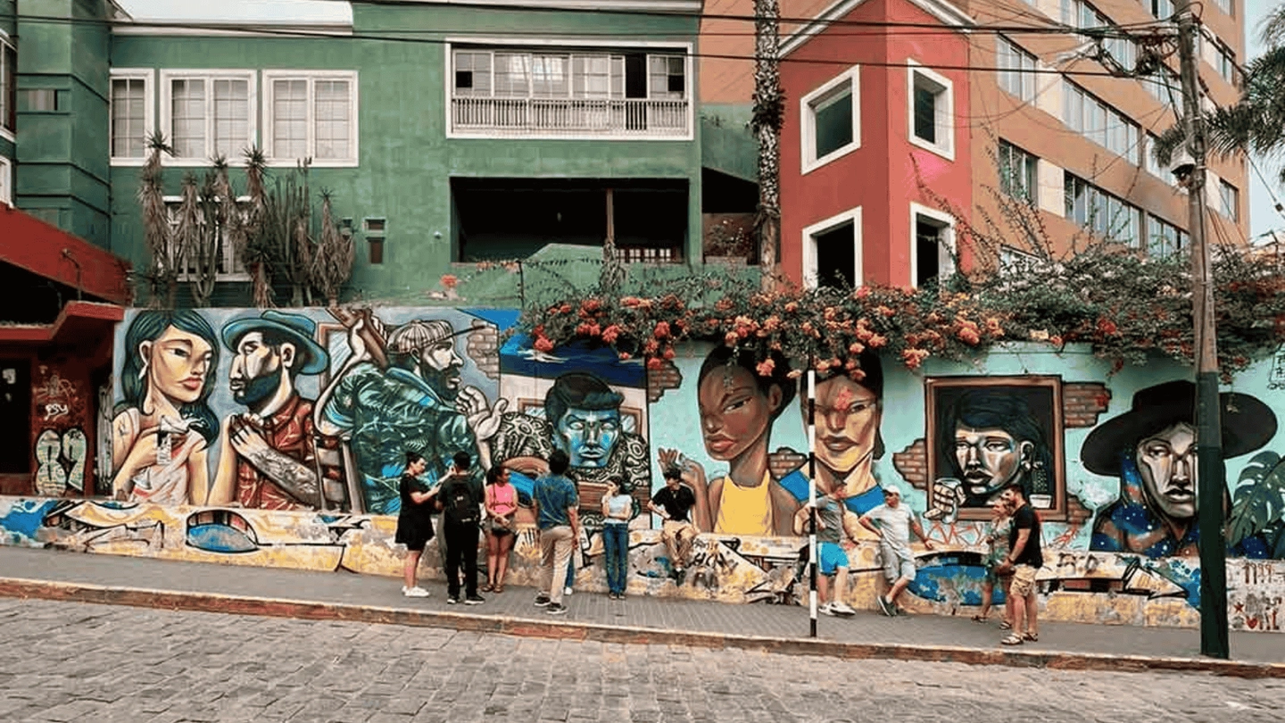 Primera parada en uno de los espacios más emblemáticos de Miraflores, rodeado por la iglesia principal, la municipalidad y una activa oferta cultural al aire libre.