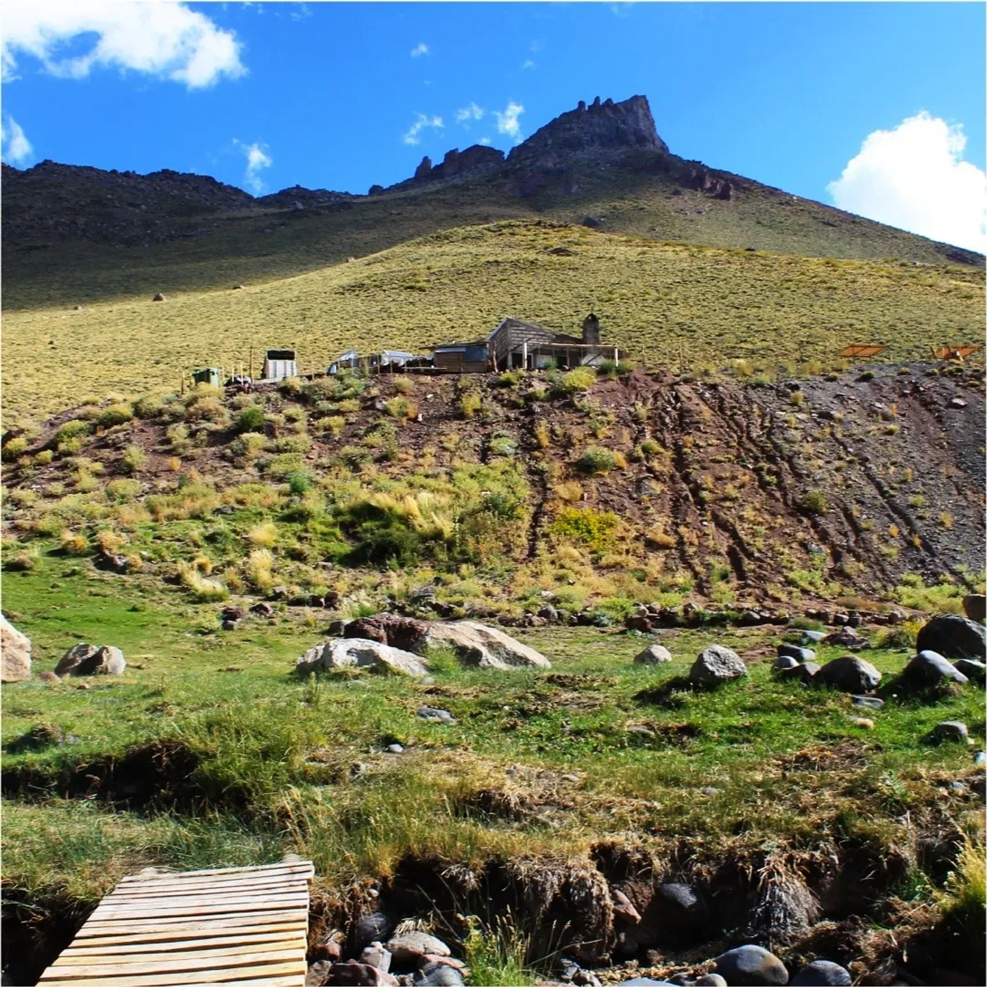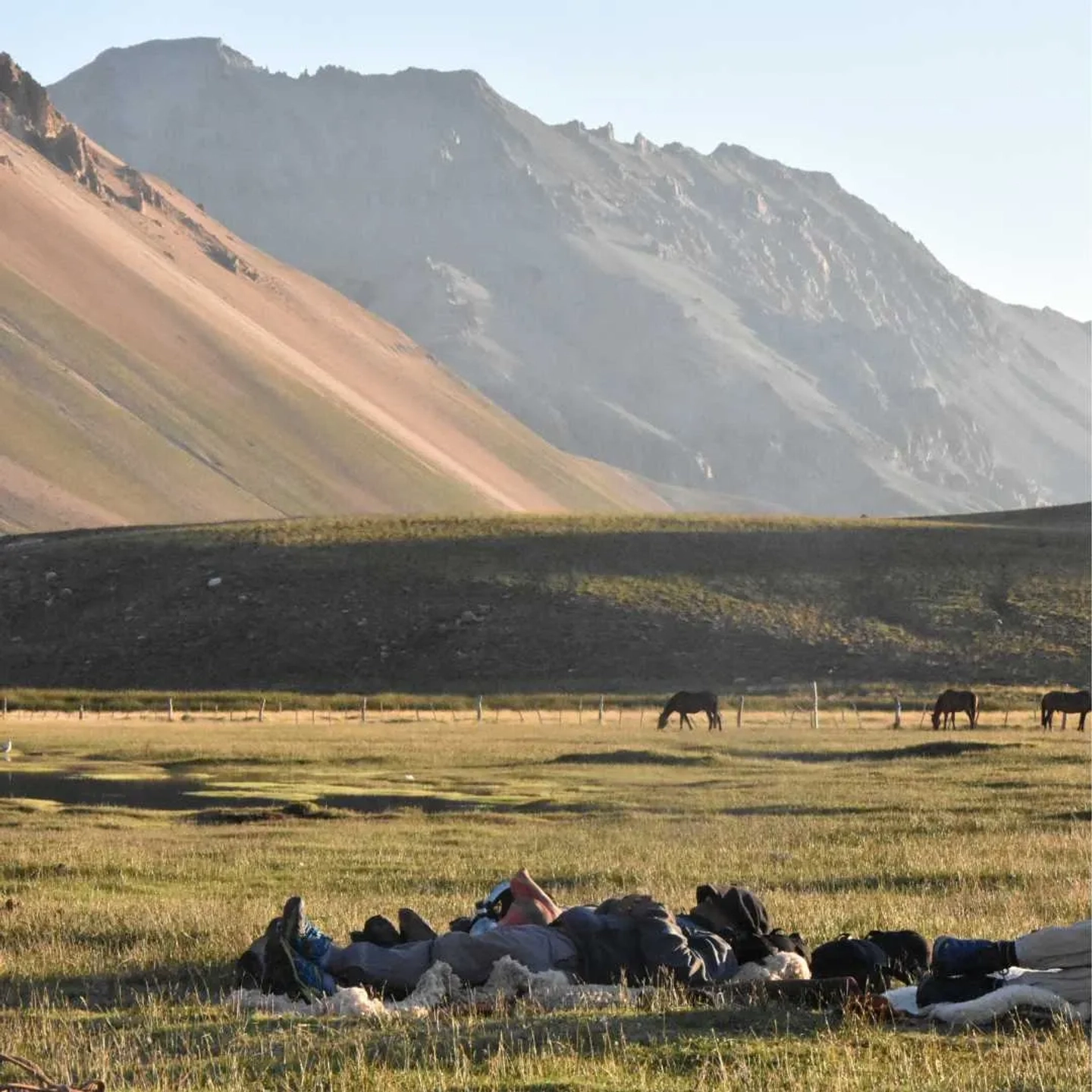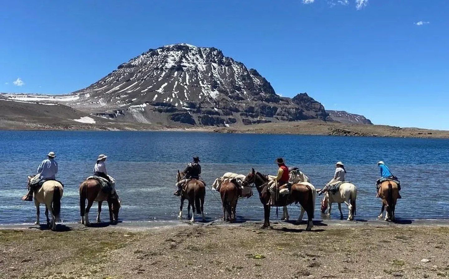 Desayuno y salida en combi hasta El Soler. Almuerzo en puesto Araya, típico de los Andes. Iniciamos la cabalgata con el cruce del Río Atuel, hacia el oeste. Al atardecer montamos nuestro campamento Base en el paraje El Barroso. Cena y pernocte.